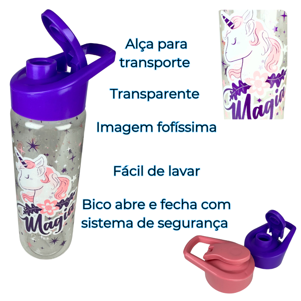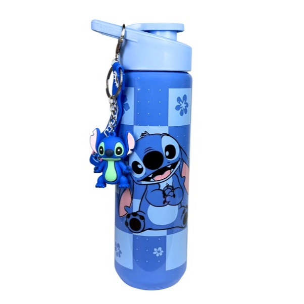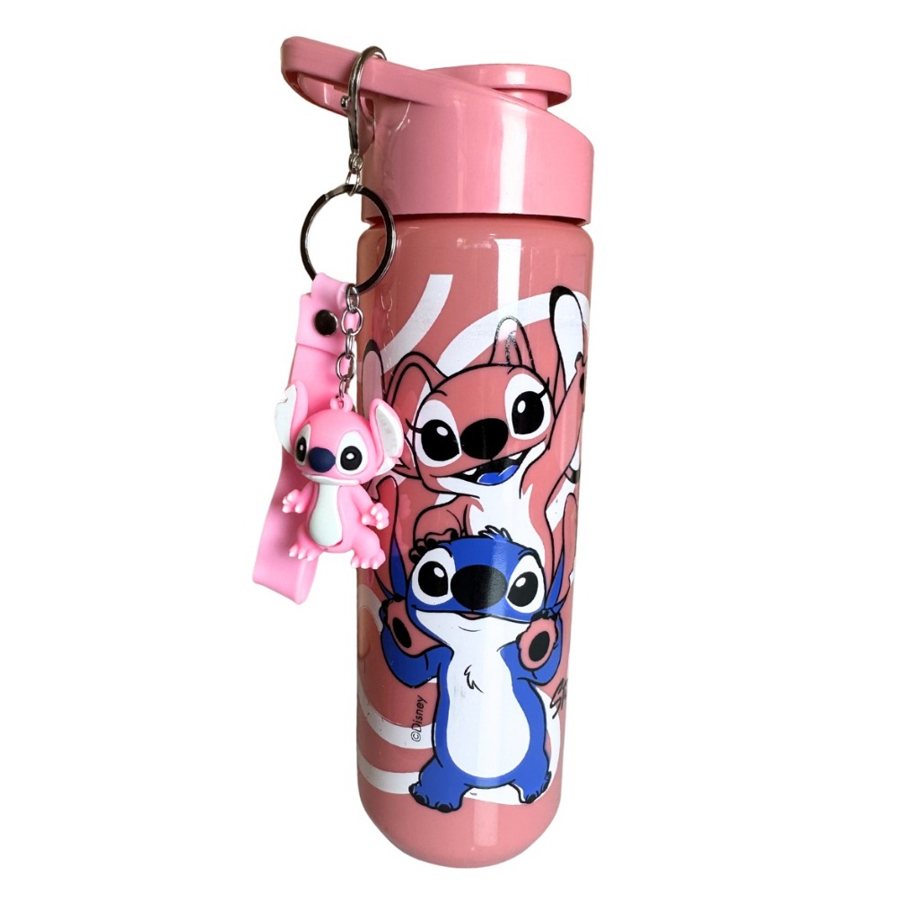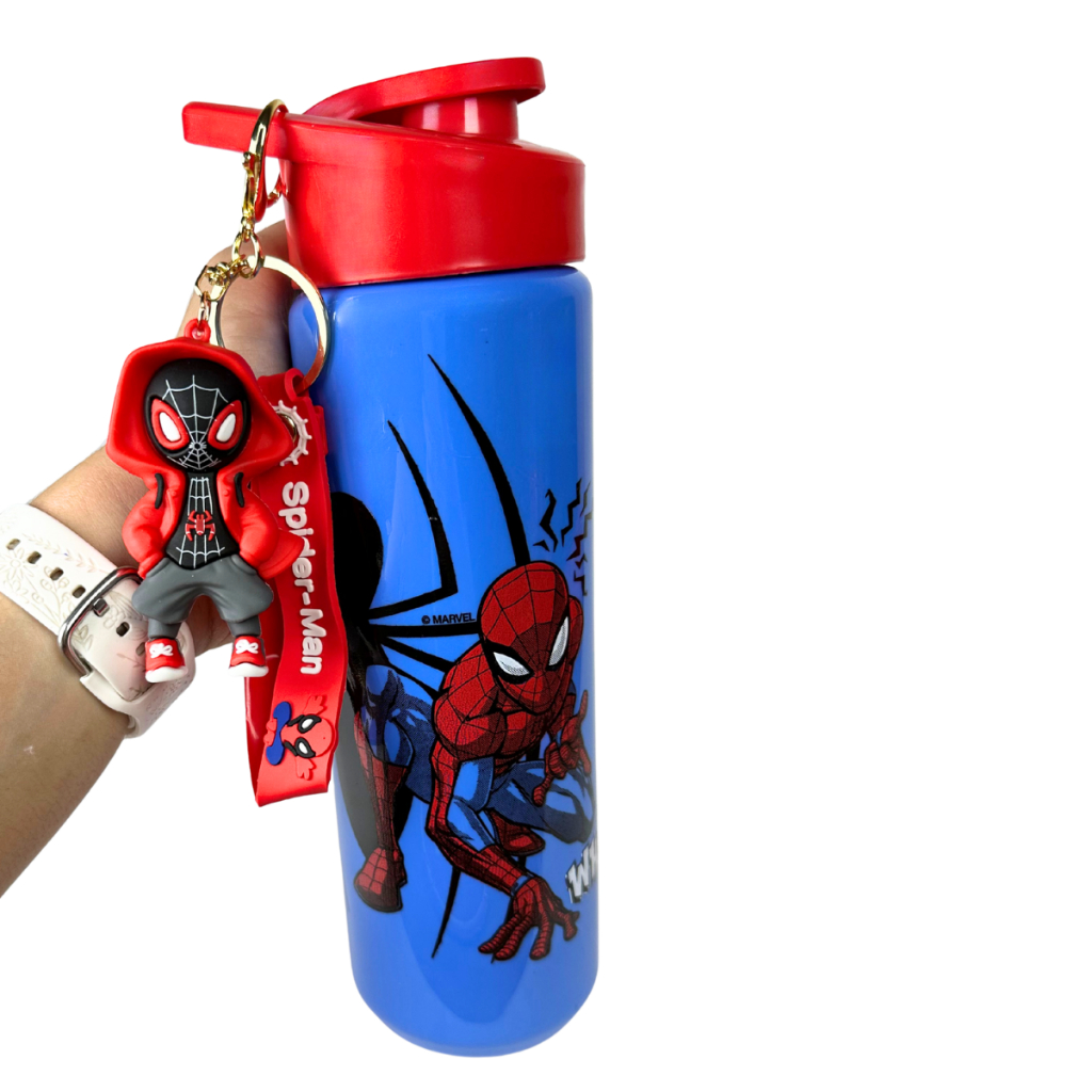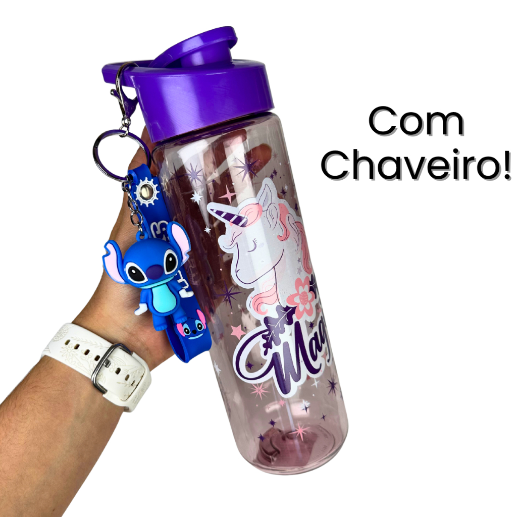 Garrafinha Infantil Tema Stitch, Magia e Homem Aranha 700ml -Alça e Acompanha Lindo Chaveiro