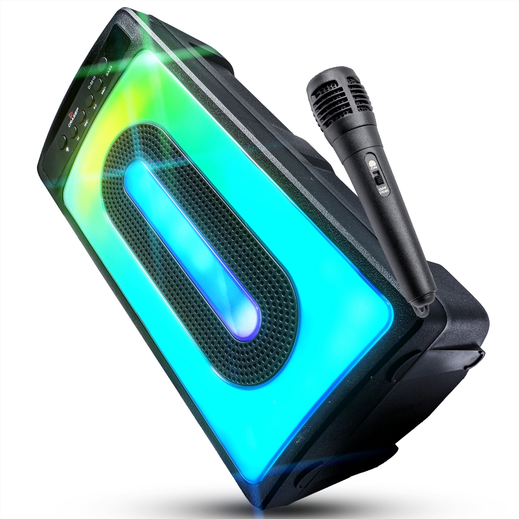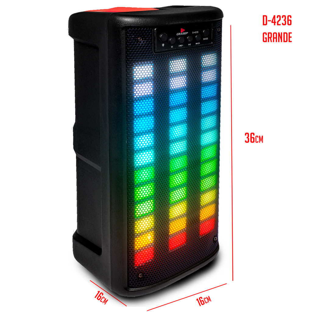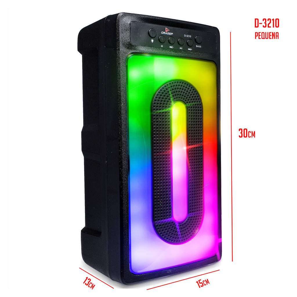 Caixa Som Bluetooth Amplificada Alta Potente LED RGB Aux P2 Micro SD USB Radio FM Acompanha Microfone Karaoke