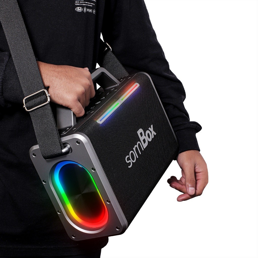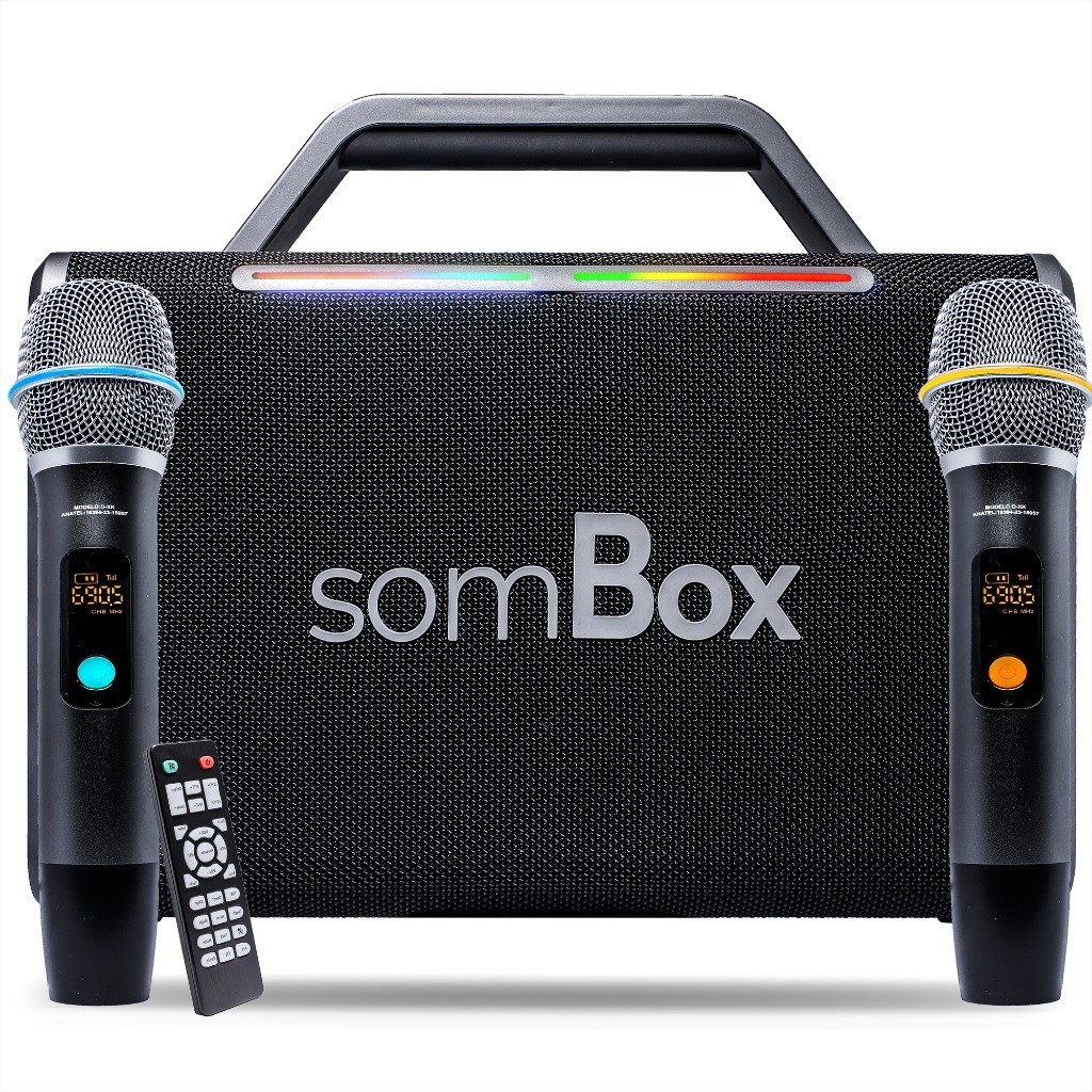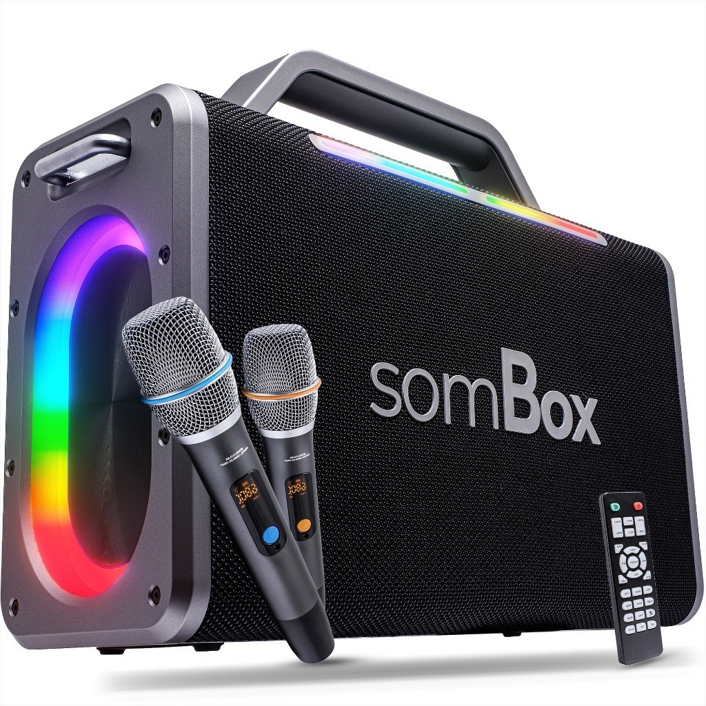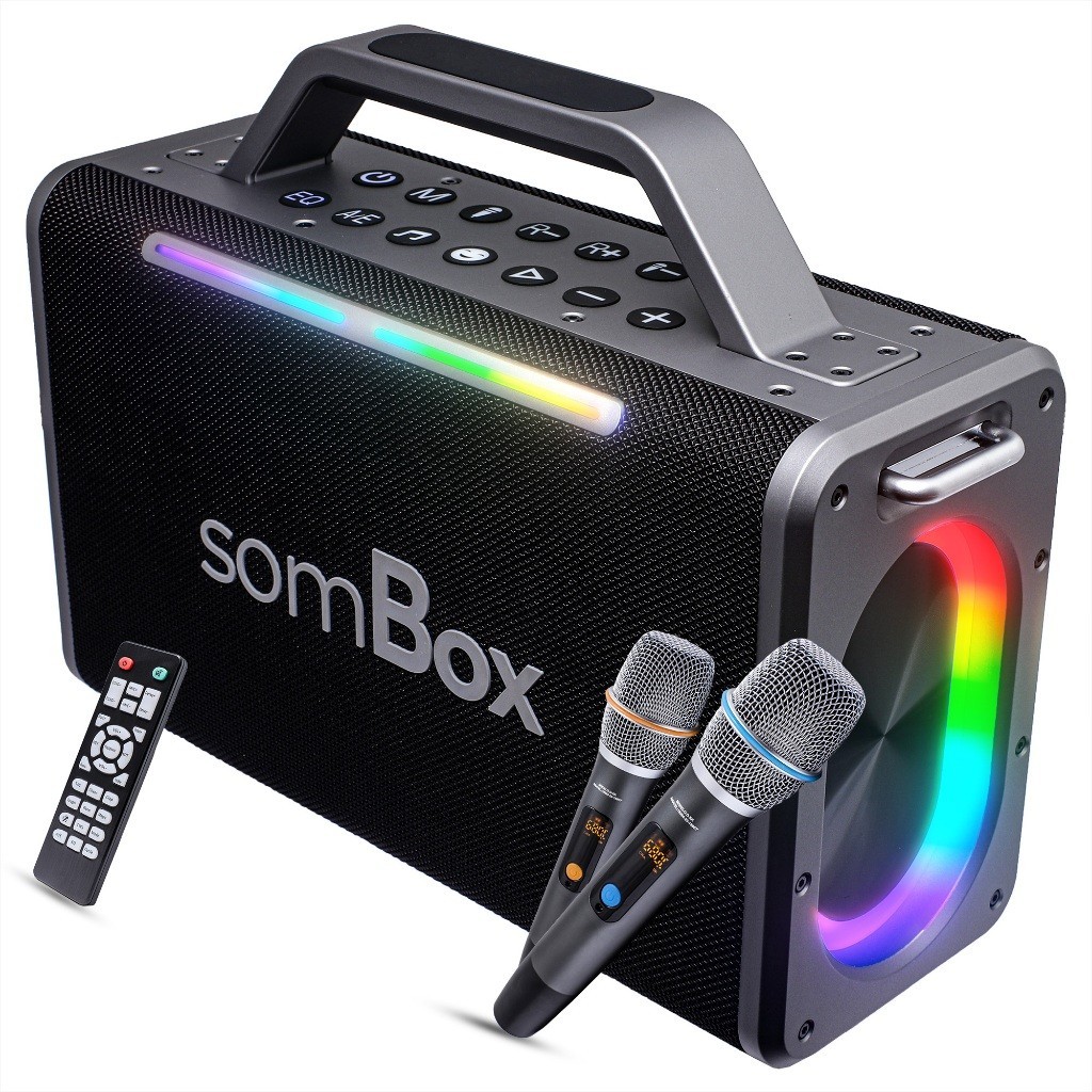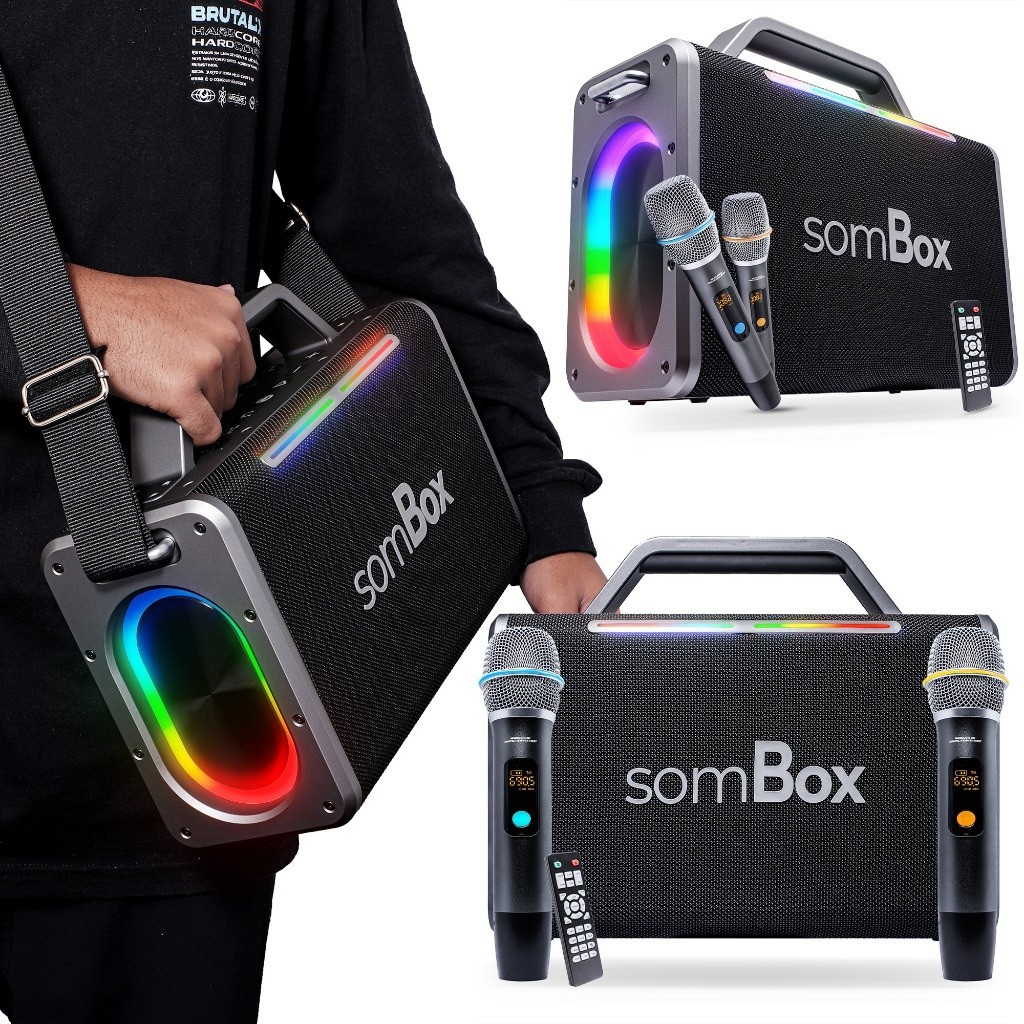 Caixa De Som Amplificada Bluetooth 200W RGB Som 360° TWS Karaokê Microfone Duplo Controle Aprova D'Agua Aux P2 P10 Usb