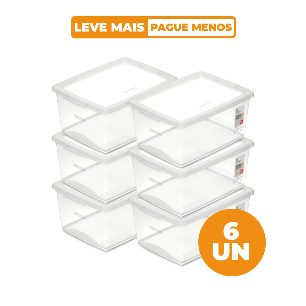 Kit Caixa Organizadora Plástica Cristal 7,5L Ordene 6un