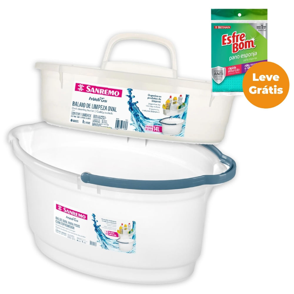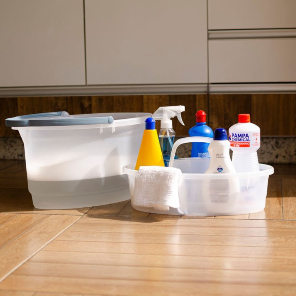 Kit Balde Oval 14L e Balaio de Limpeza Plástico Transparente Hydrus Sanremo