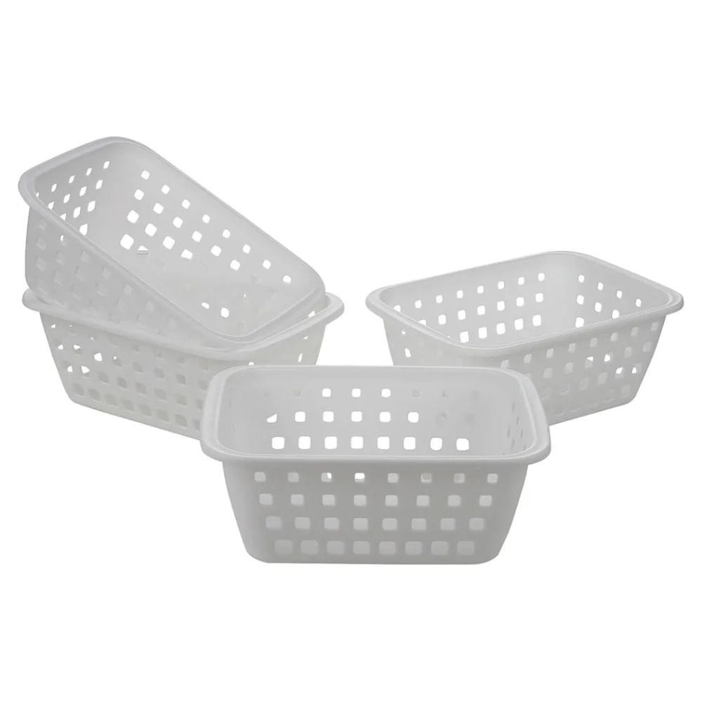 Kit Cesto Organizador Plástico com Furação Branco 3L Leve 4 Pague 3 Log Ordene