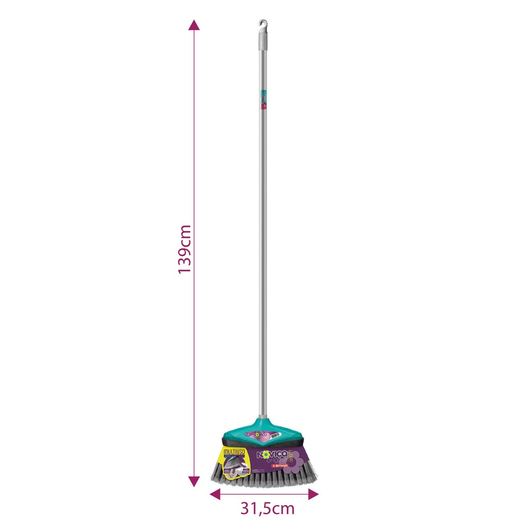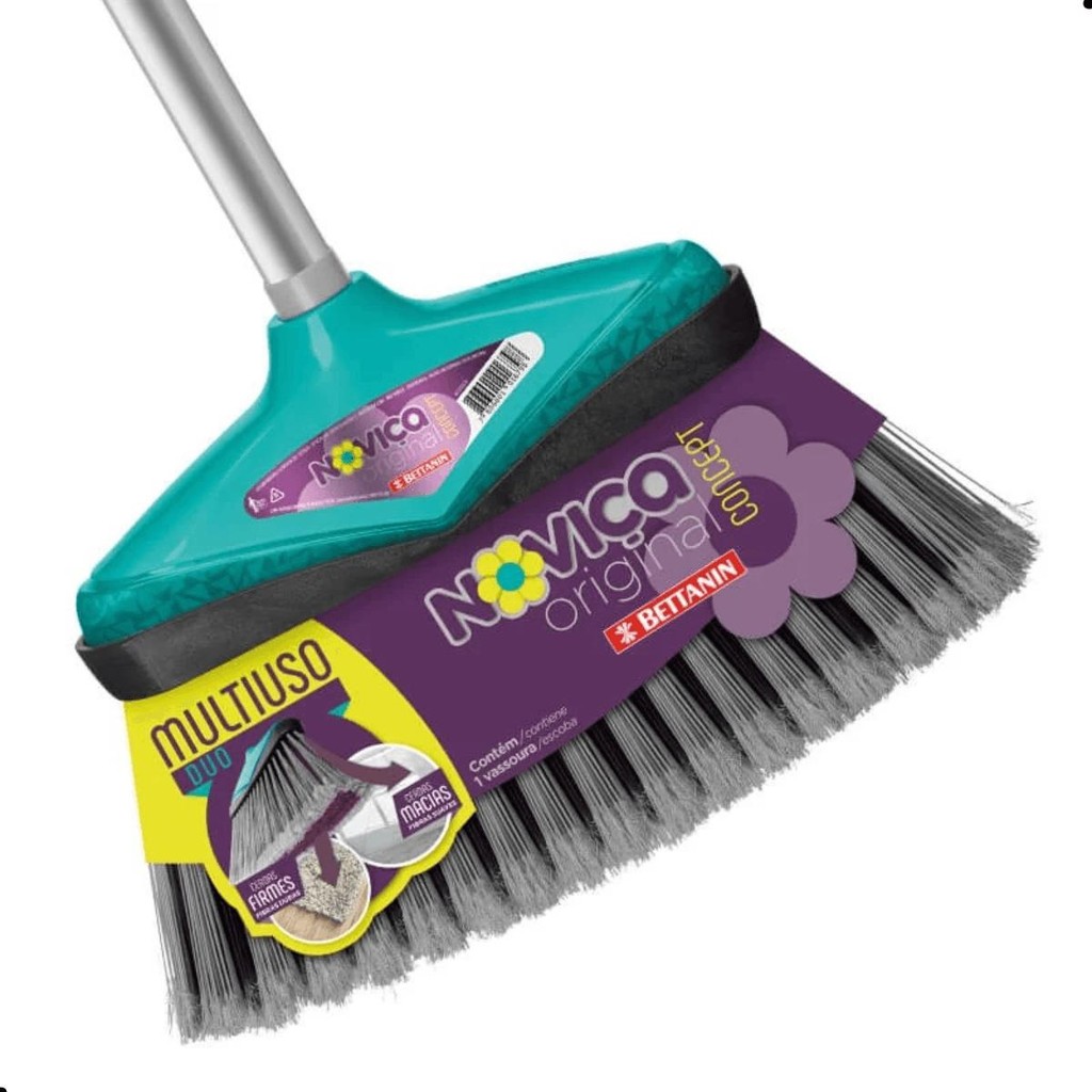 Kit Vassoura + Rodo 30cm + Pá Para Lixo Com Cabo Noviça