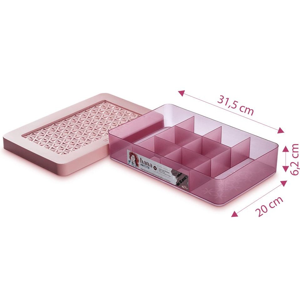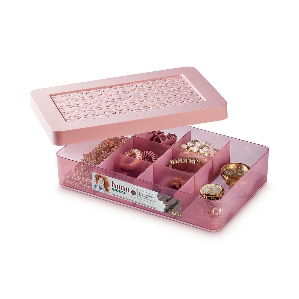 Caixa Porta-Joias Plástica com 8 Divisórias Rosé Ordene