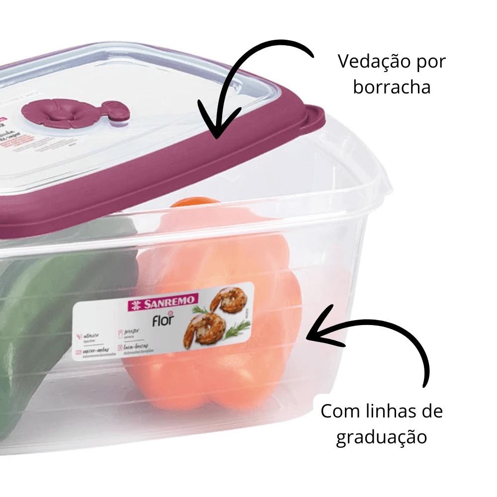 Pote Plástico Quadrado Hermético Açaí 920ml Flor Sanremo