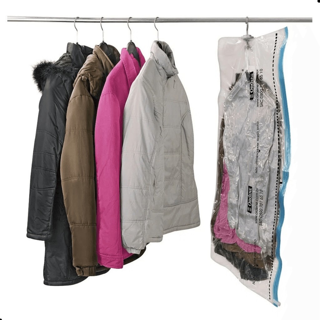 Kit 2 Sacos a Vácuo Organizador Hang Bag com Gancho Transparente 70cm x 1,2m Vac Bag Ordene