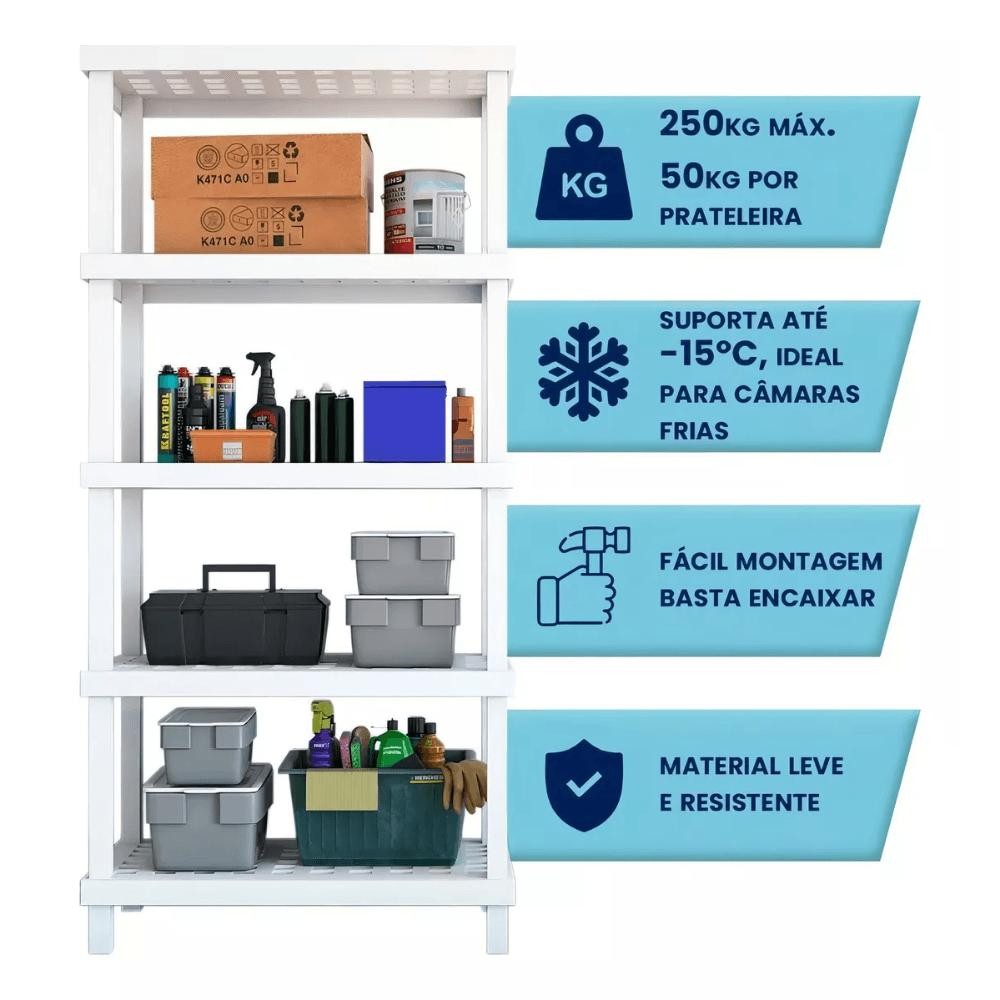 Estante Plástica Profissional com 5 Prateleiras Branca Vig Ordene