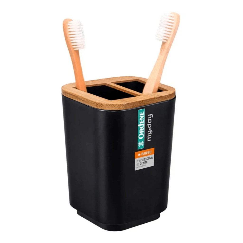 Kit Porta Escova de Dente + Saboneteira + Porta Sabonete Líquido Preto Bambu My Day Ordene