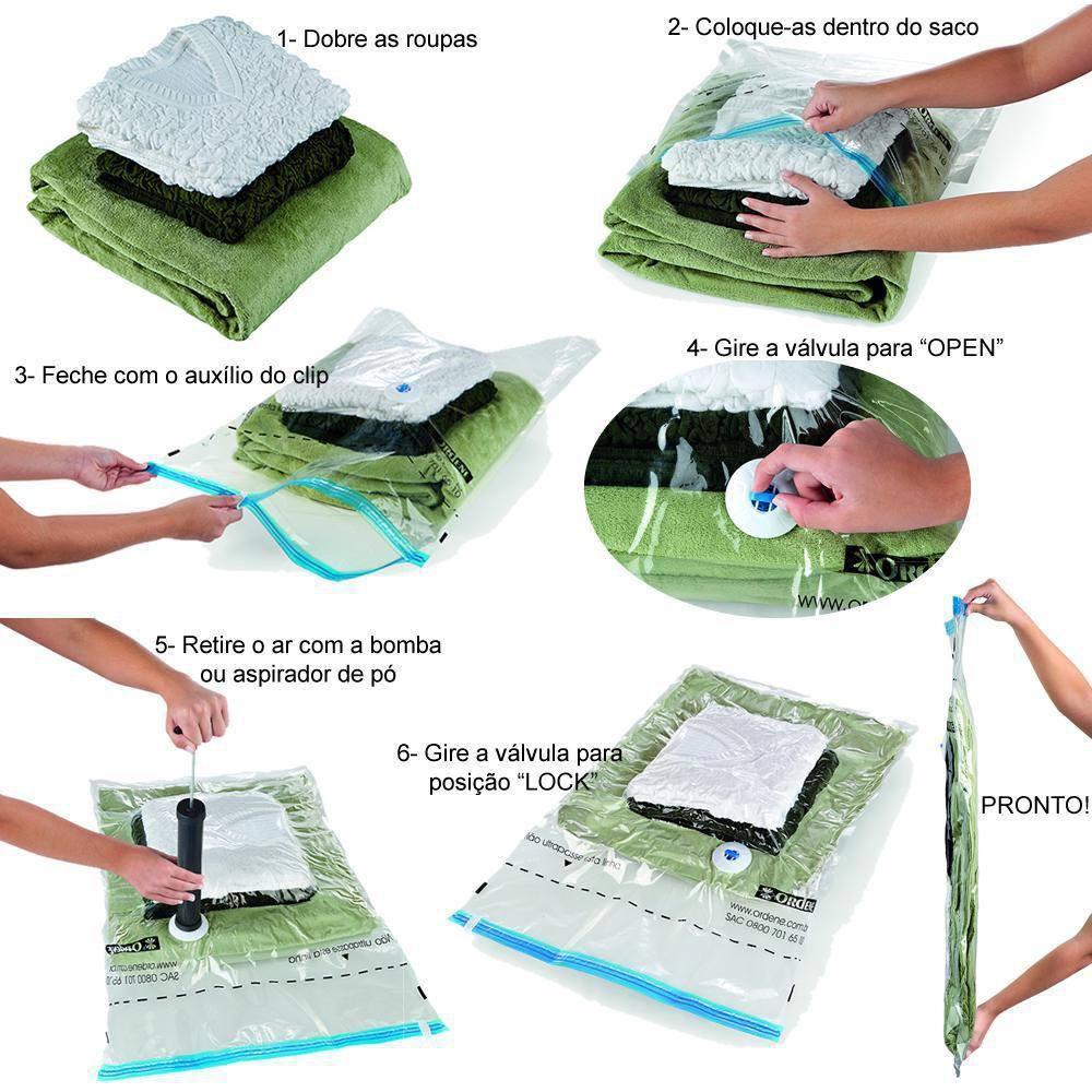 Kit 10 Sacos a Vácuo Extragrande Transparente 80cm x 1m Vac Bag Ordene