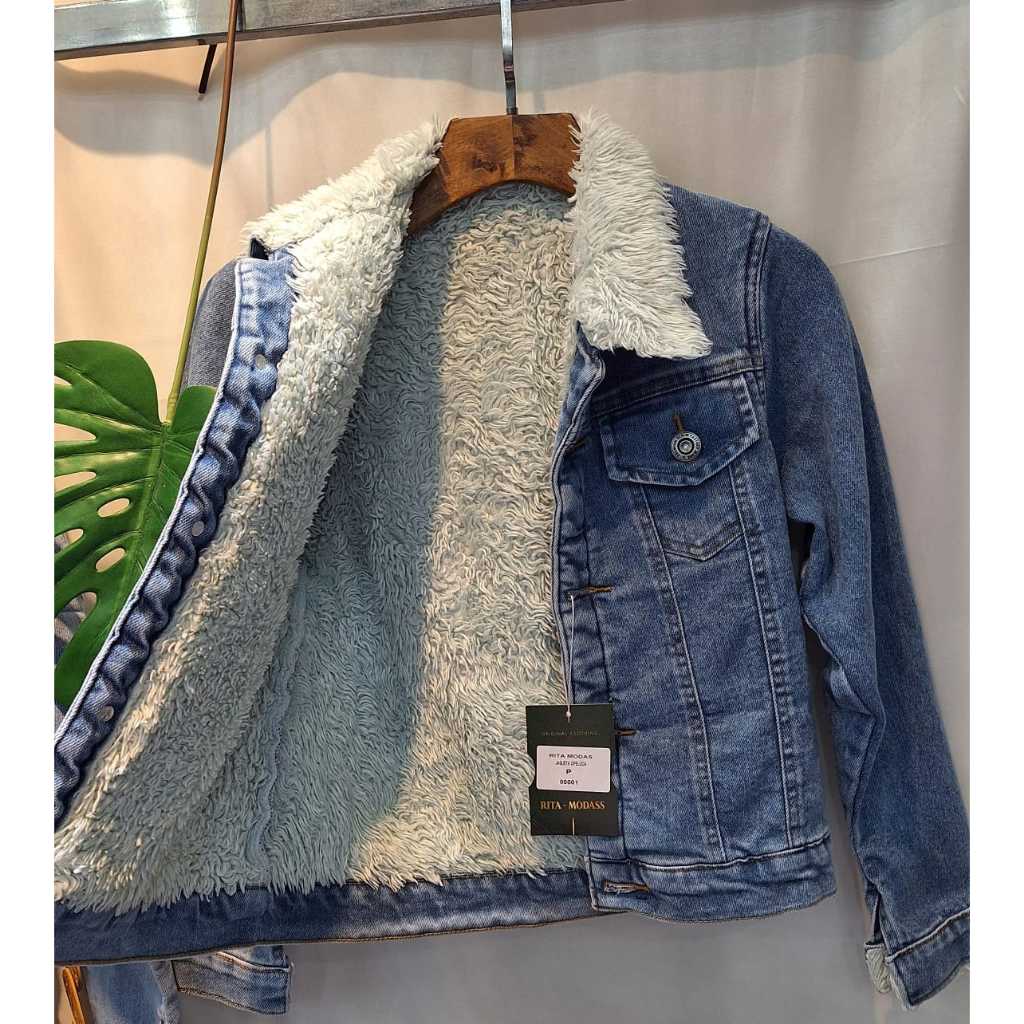 jaqueta jeans femenina, com pelucia inverno