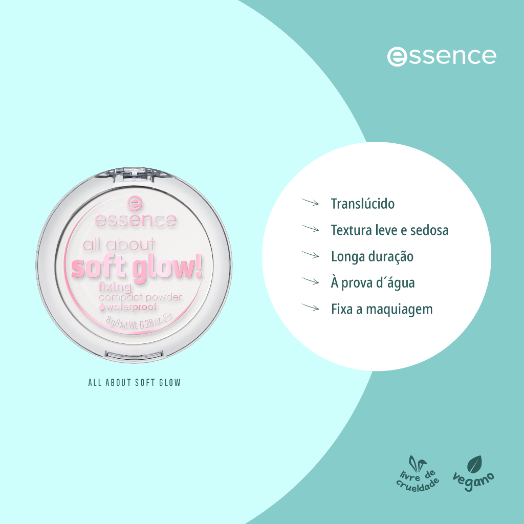 Pó compacto translúcido essence all about soft glow! Á prova d'água