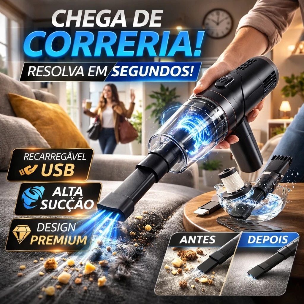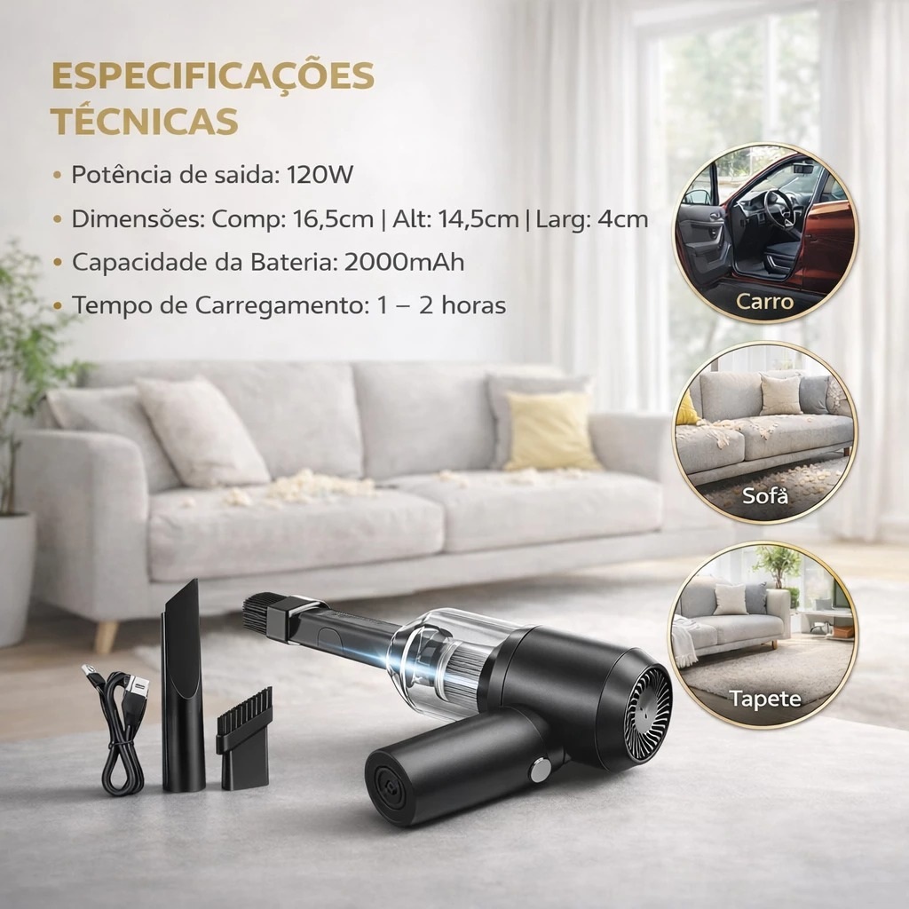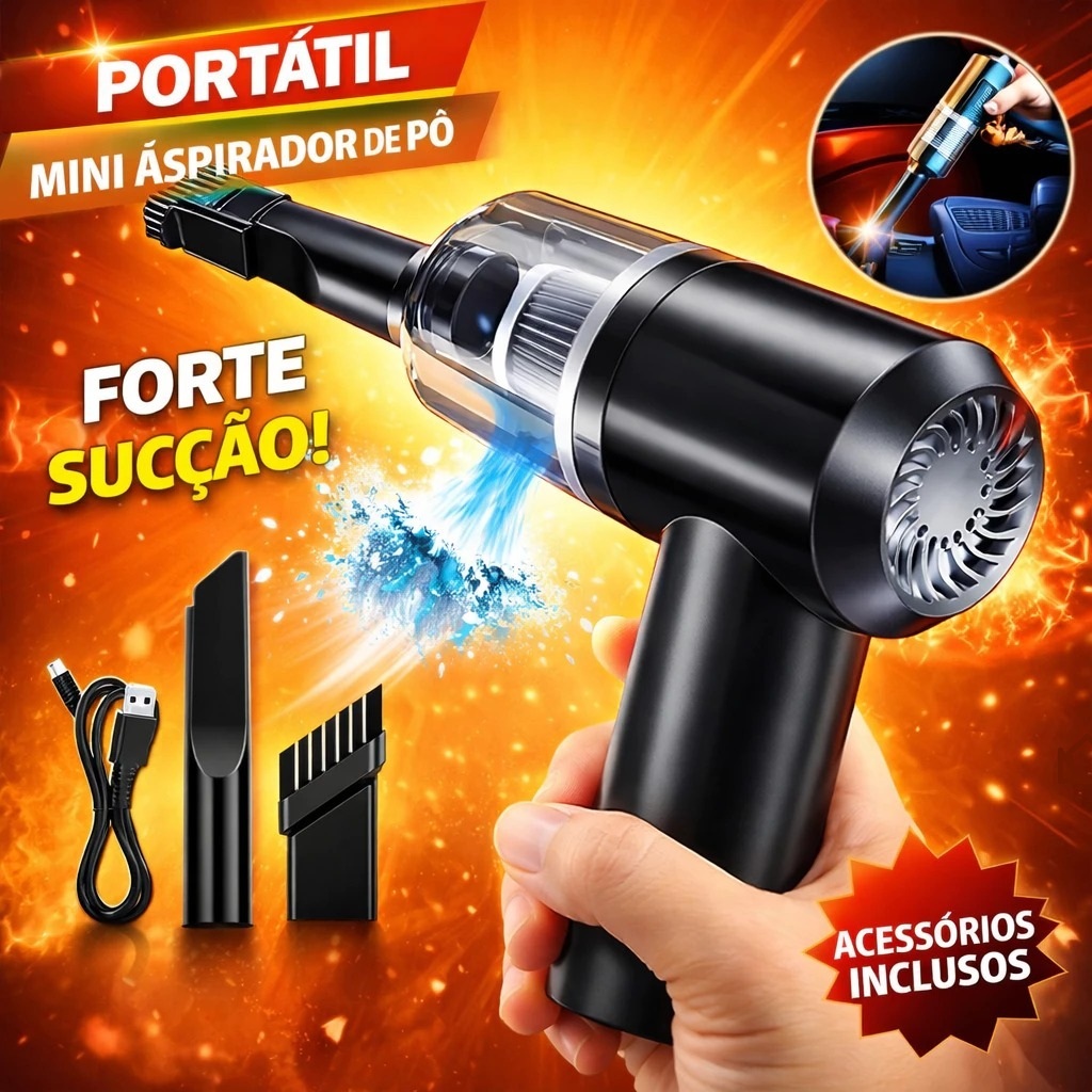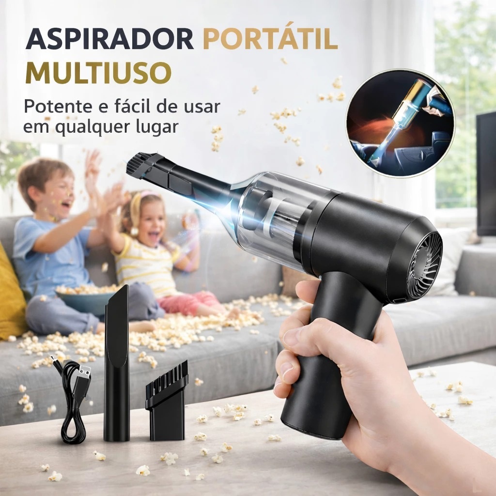 Mini Aspirador Pó Portátil 120W 6000Pa USB Recarregável Sem Fio Carro Casa Potente
