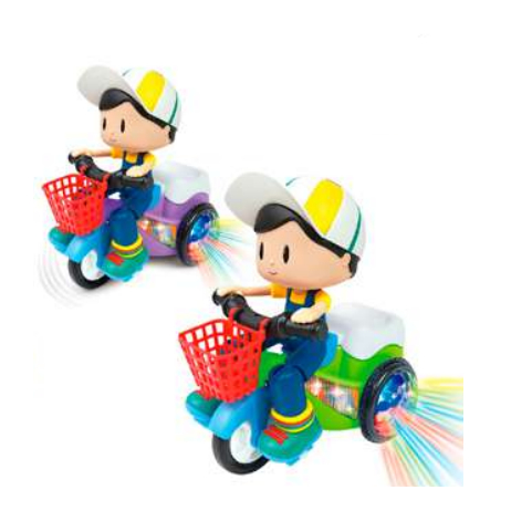 BRINQUEDO TRICICLO MENINO OU MENINA MUSICAL COM LUZ BATE E VOLTA GIRA 360 INFANTIL