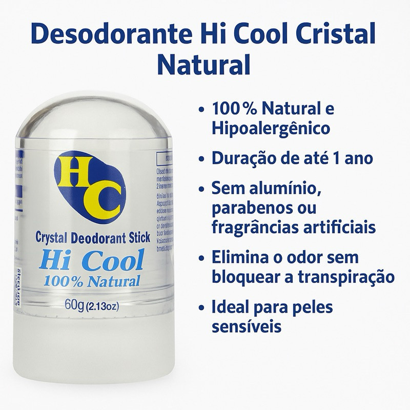 Kit 2 Hi Cool Crystal Vegan Desodorante Em Bastão , Sem Perfume-Natural Fragrância , 60g
