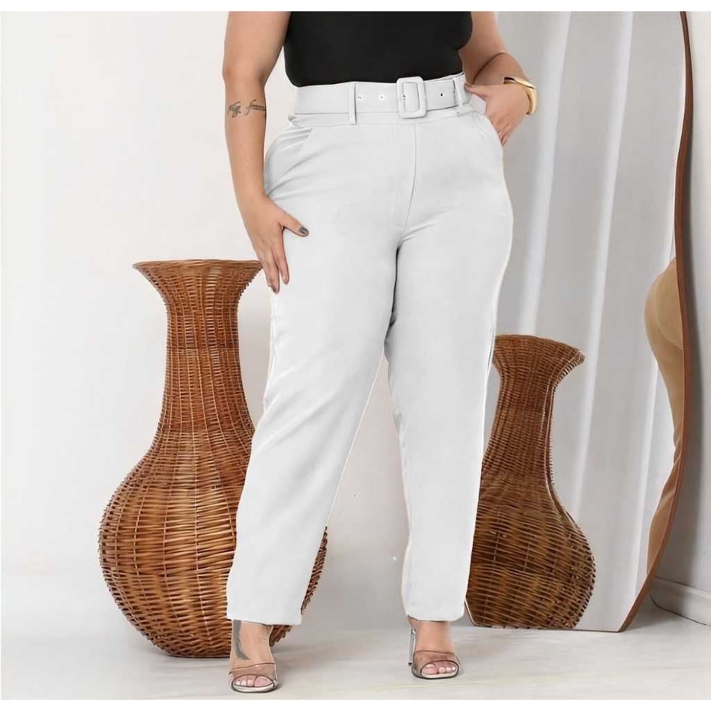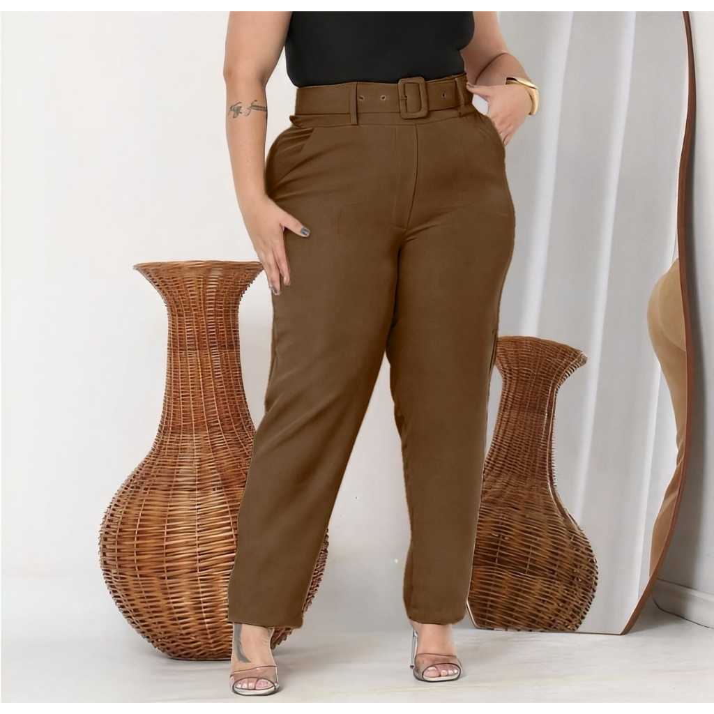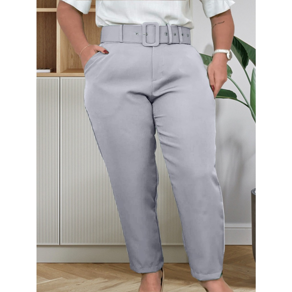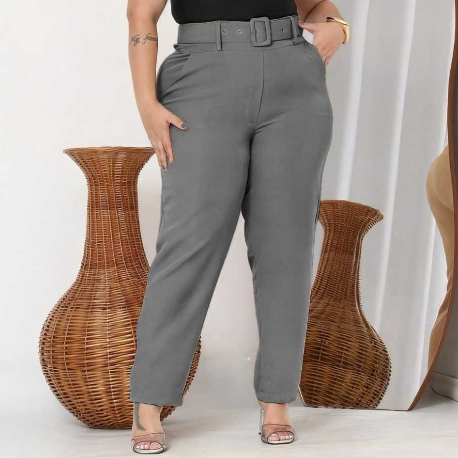 Calças plus size com corte social com cintos casuais elegantes