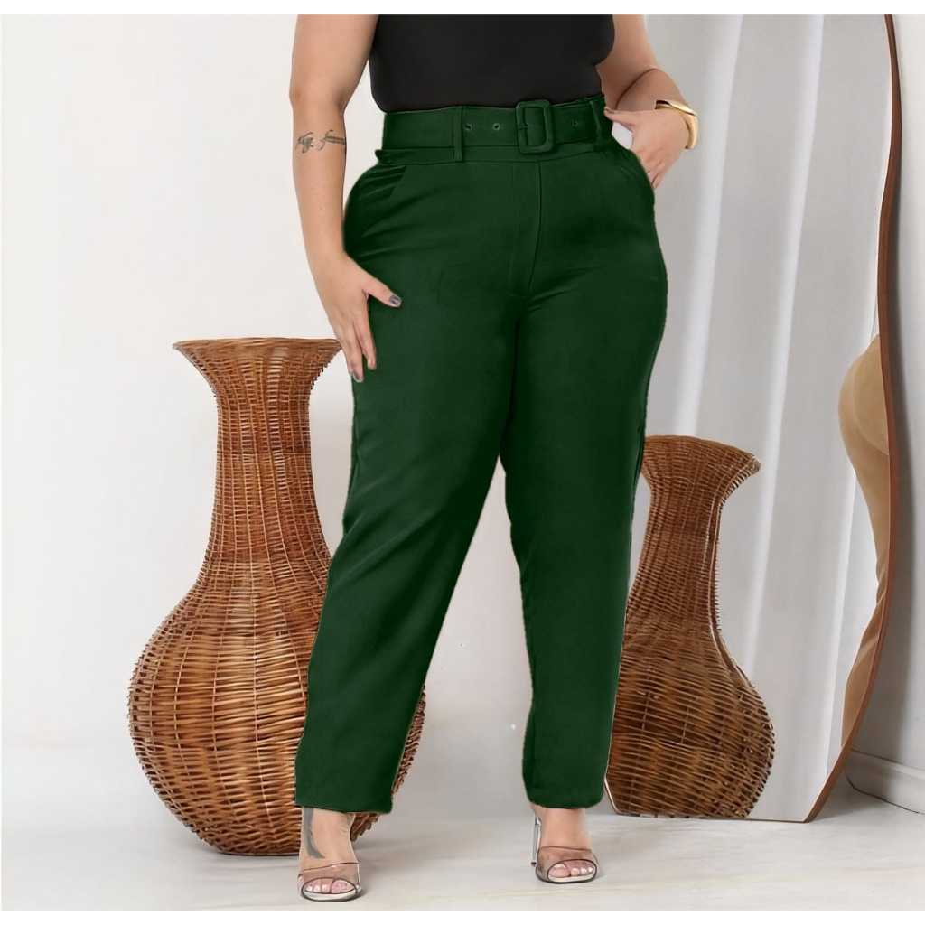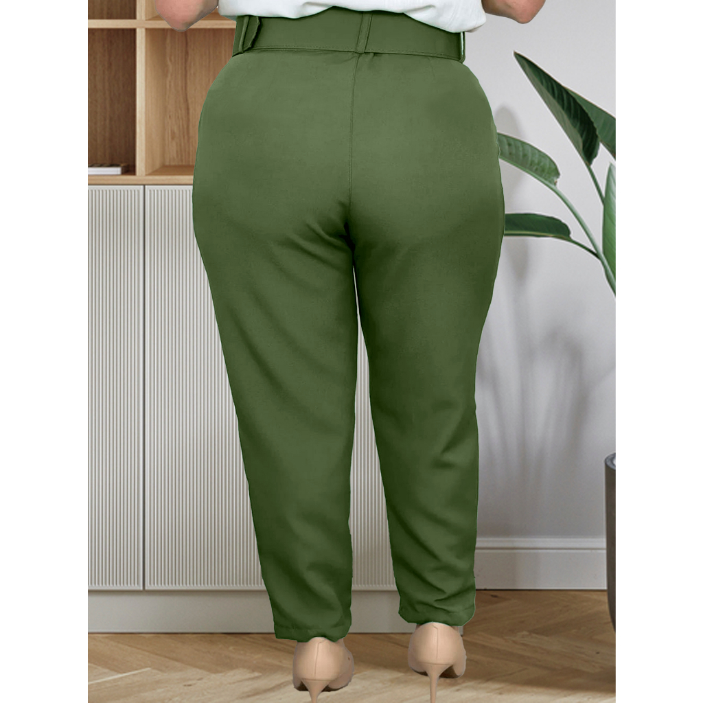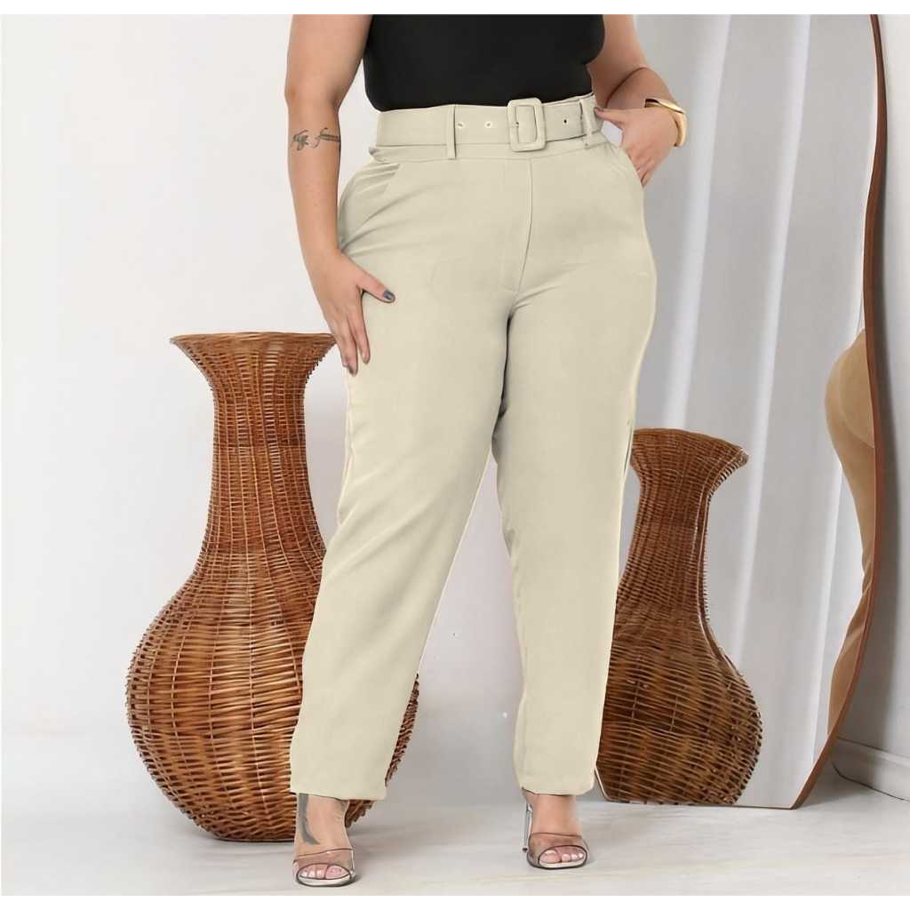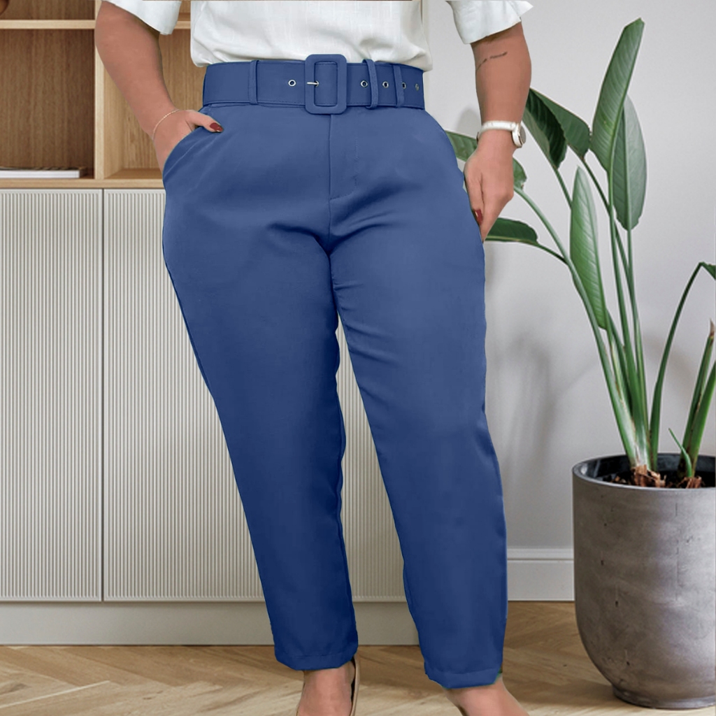 Calças plus size com corte social com cintos casuais elegantes