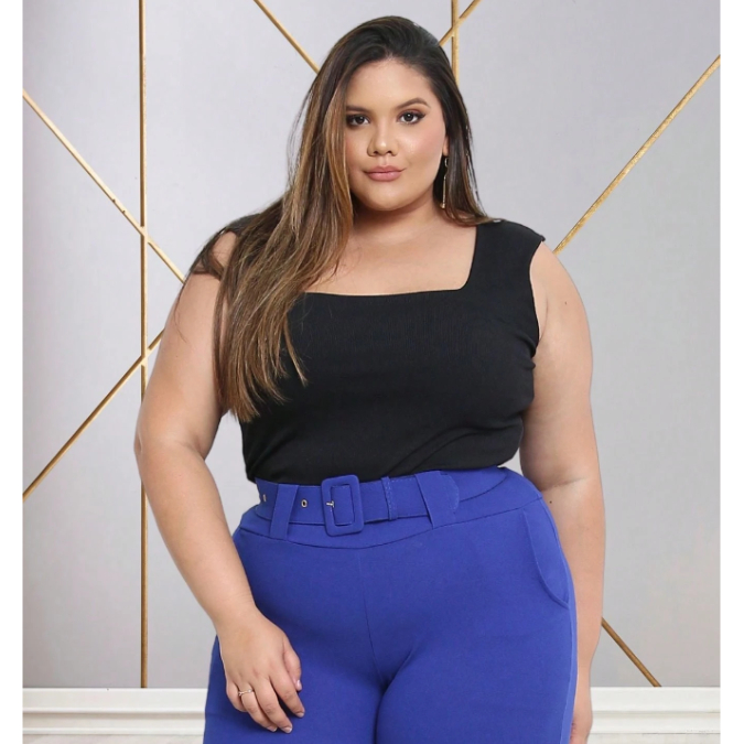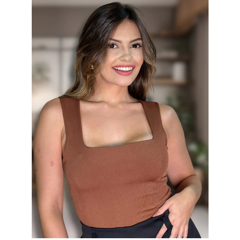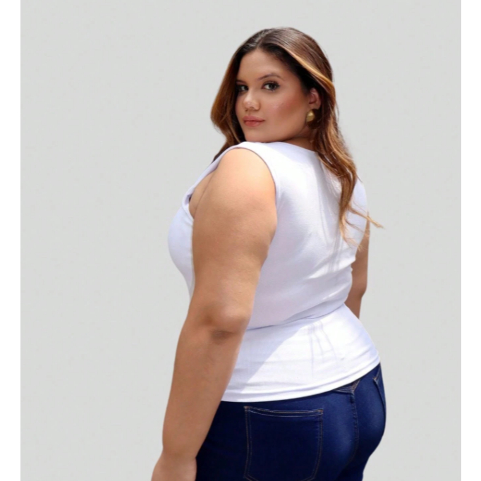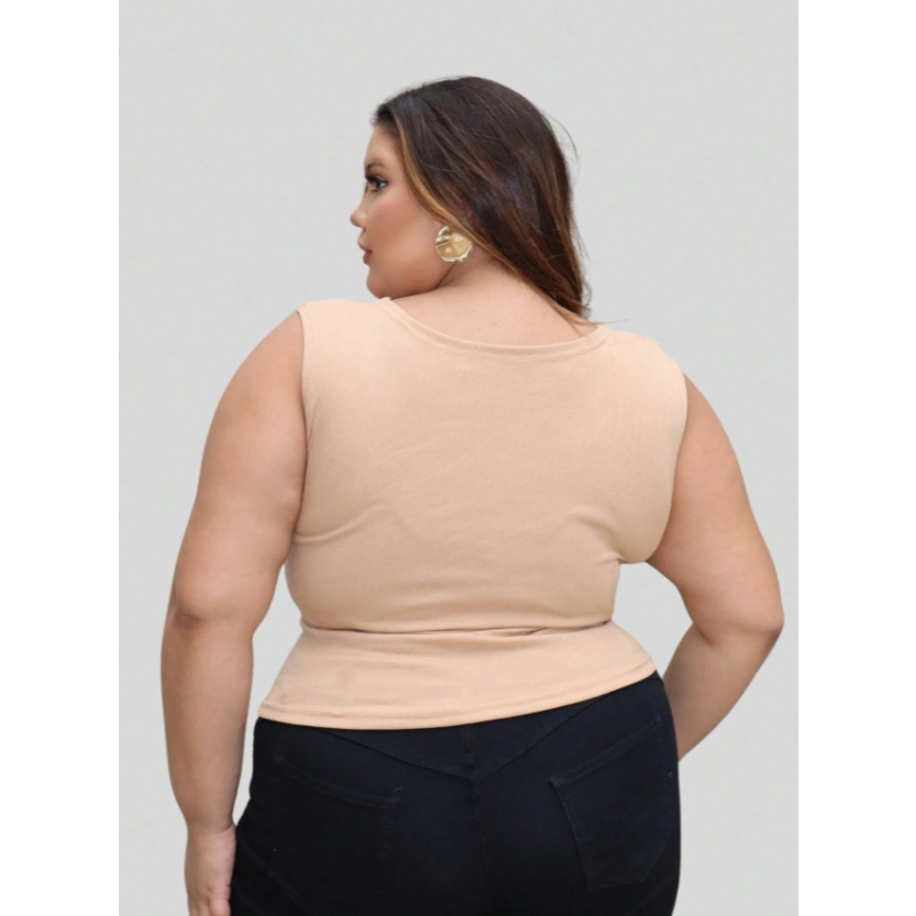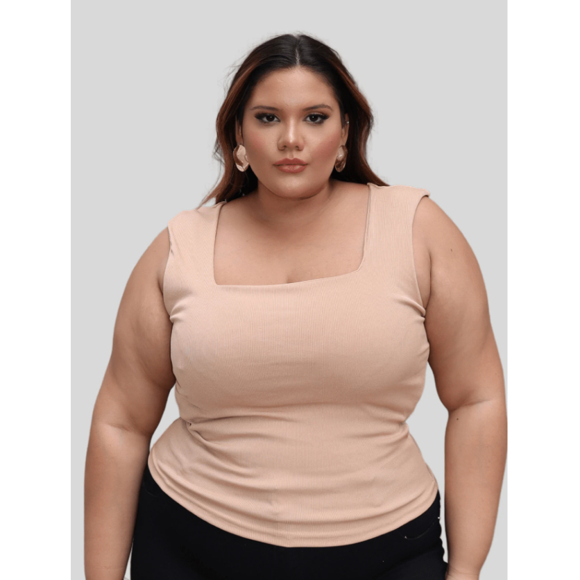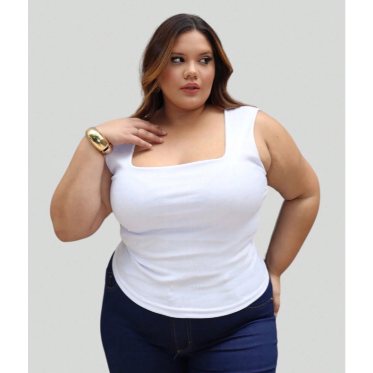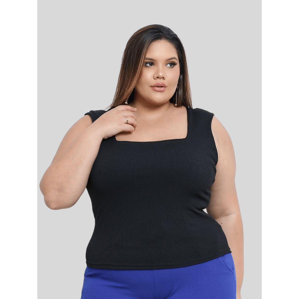 Blusa Regata Ribana feminina Plus Size Verão canelada Decote Quadrado moda casual