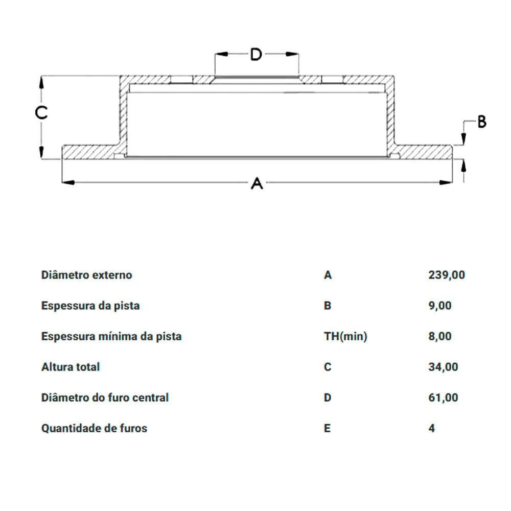Par Disco Freio Honda City 1.5 2010 A 2014 Traseiro Solido