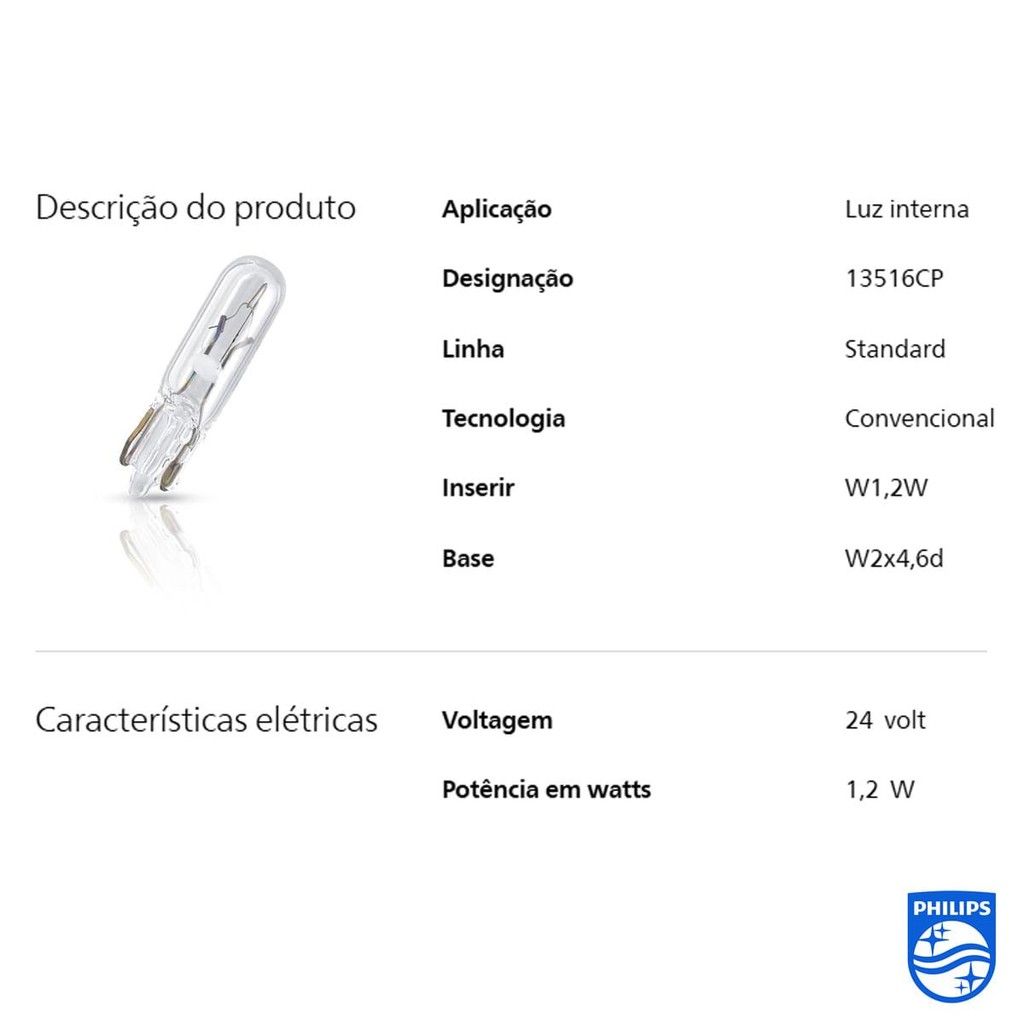 Kit 10 Lampada Philips W1.2w 24v W2x4.6d Sinalização