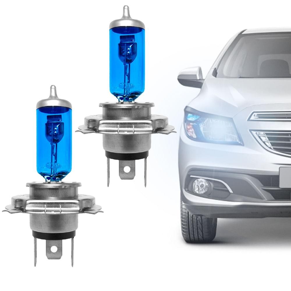 Par Lâmpadas Gauss Halógena Azul 60/55W 12V H4 P43T-38 Farol