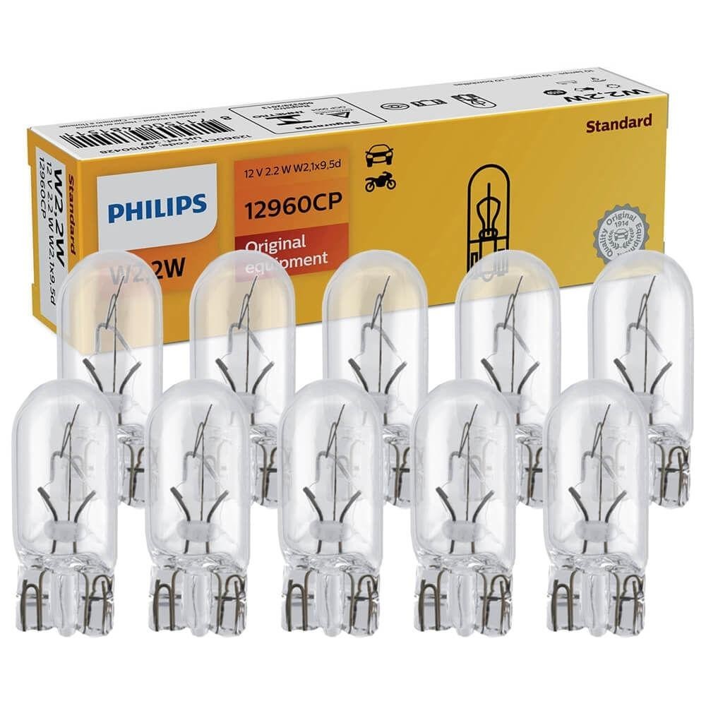 10 Lâmpada Philips Esmagada W2w 12v W2.1x9.5d Sinalização