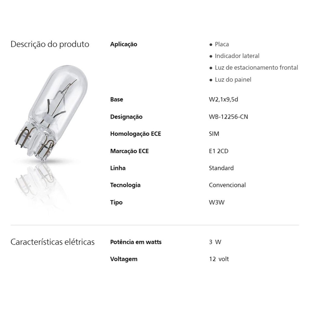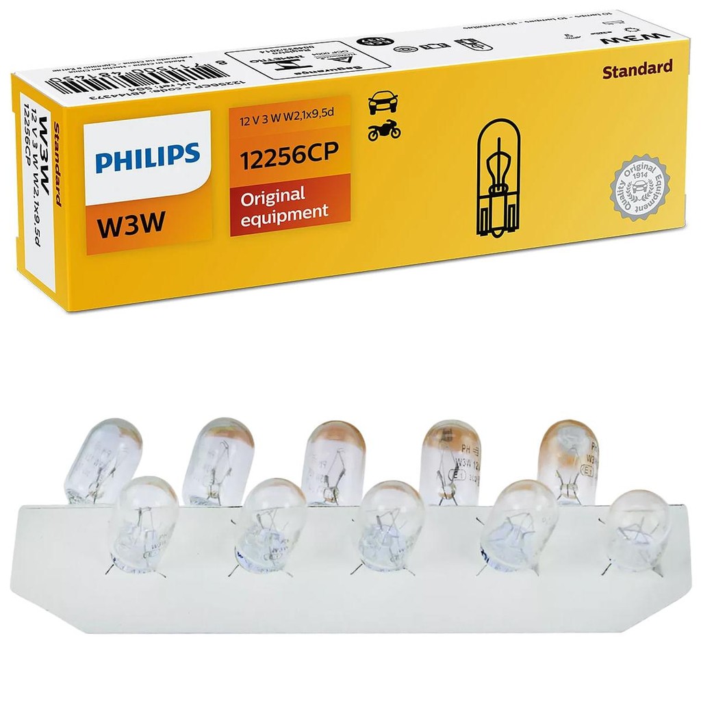 Kit 10 Lampada Philips Painel 12v Esmagada Grande 3w W3w