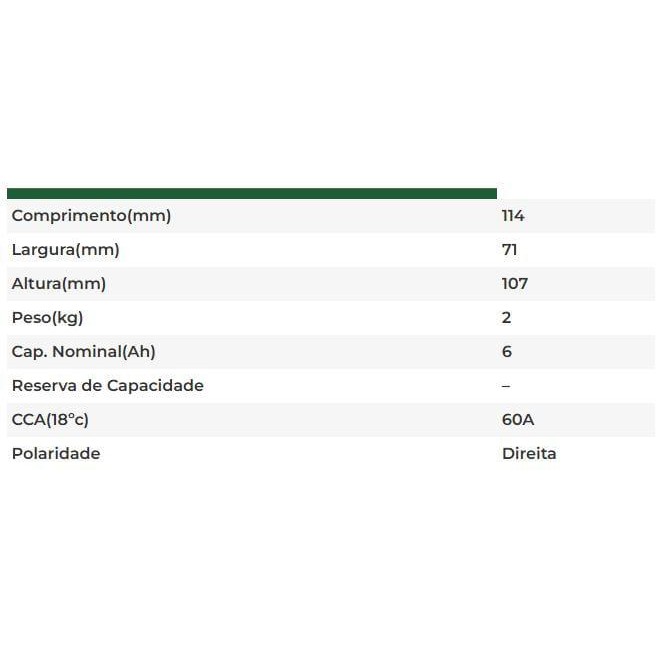 Bateria Selada ERBS 6ah ERX6BS XRE300 Fan Bros Titan PCX