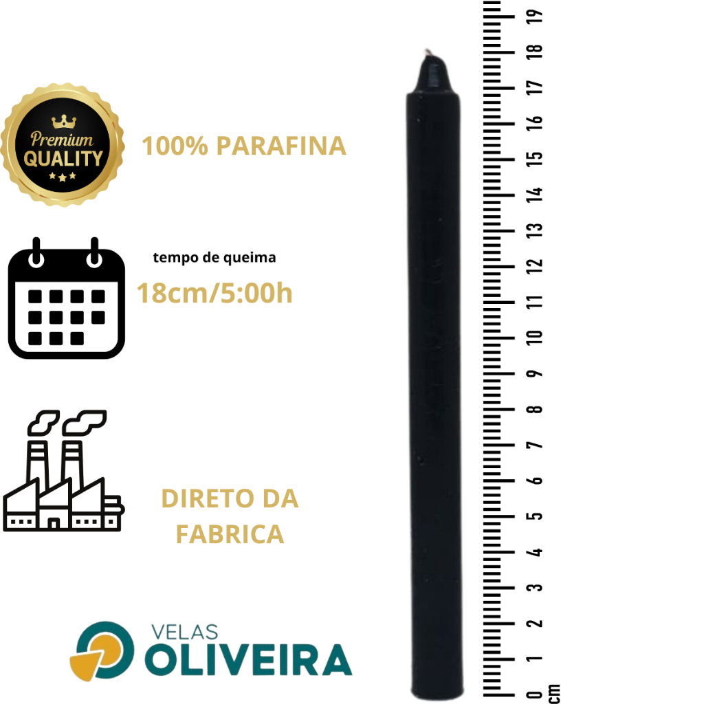 Vela Palito Preto 32 Unidades 18cm 15,8 - (Por Kilo) 100% Parafina