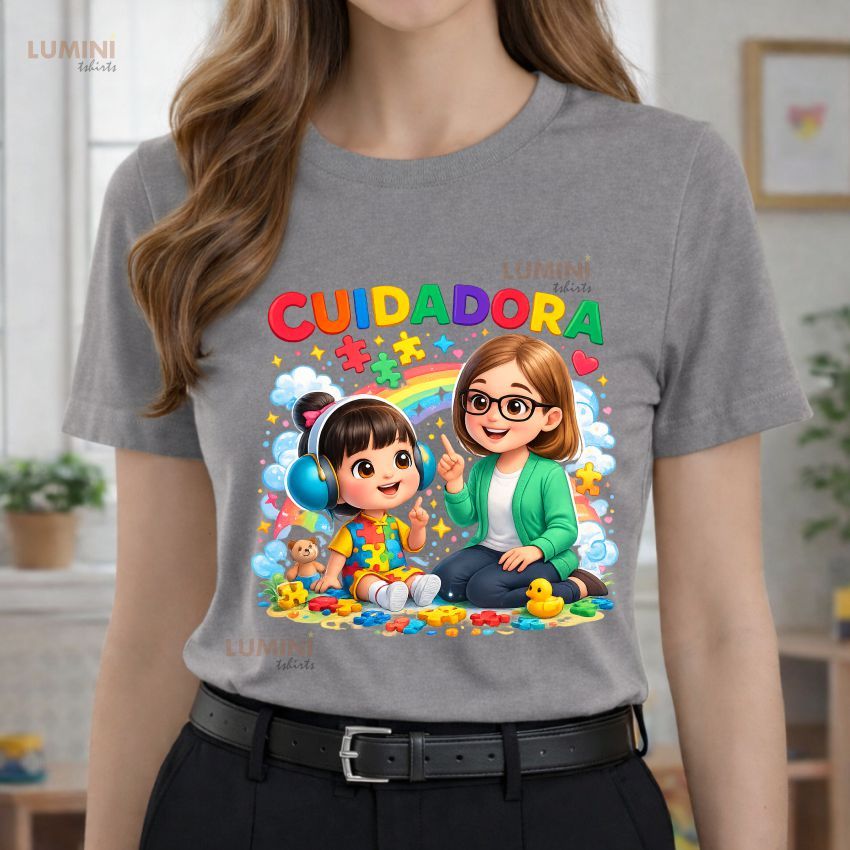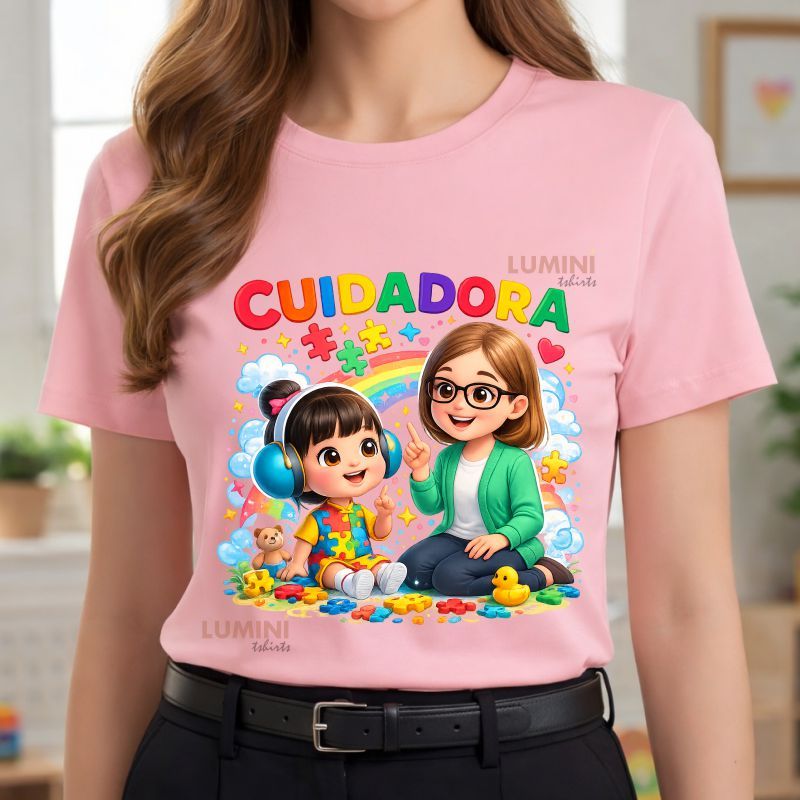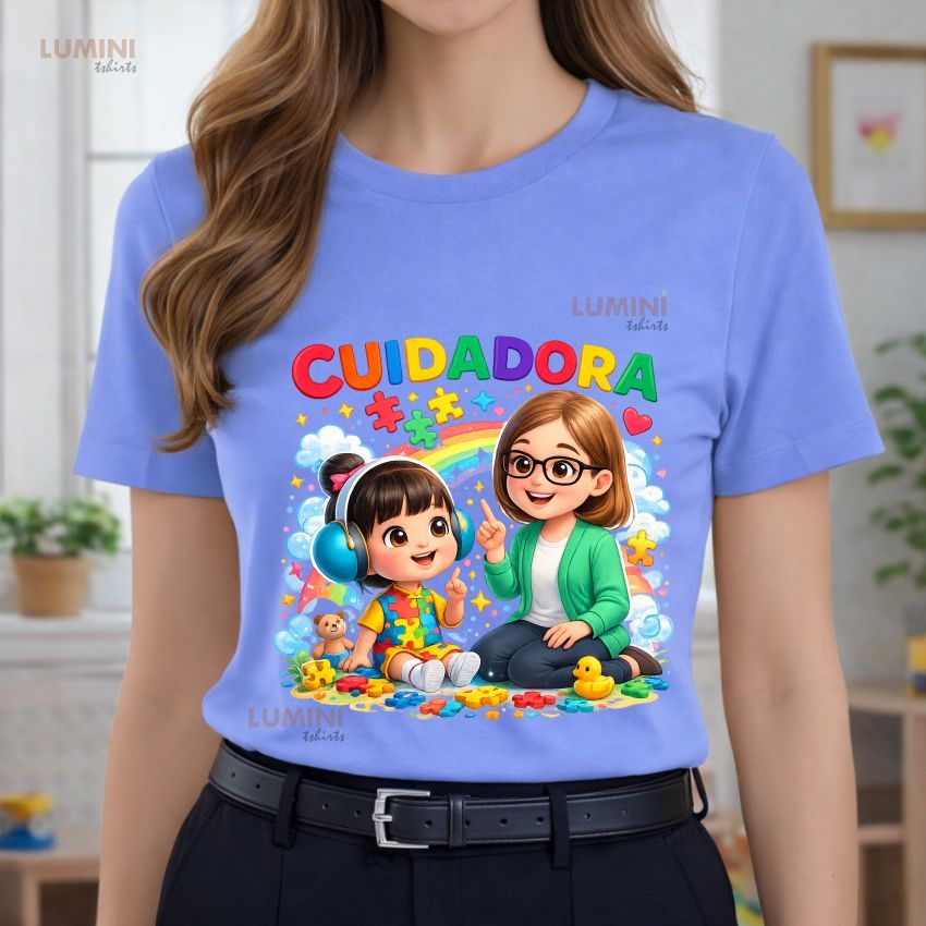 Blusa Tshirt, CUIDADORA Criança autista, blusas coloridas, cuidador, autismo, inclusão, educação infantil, escola