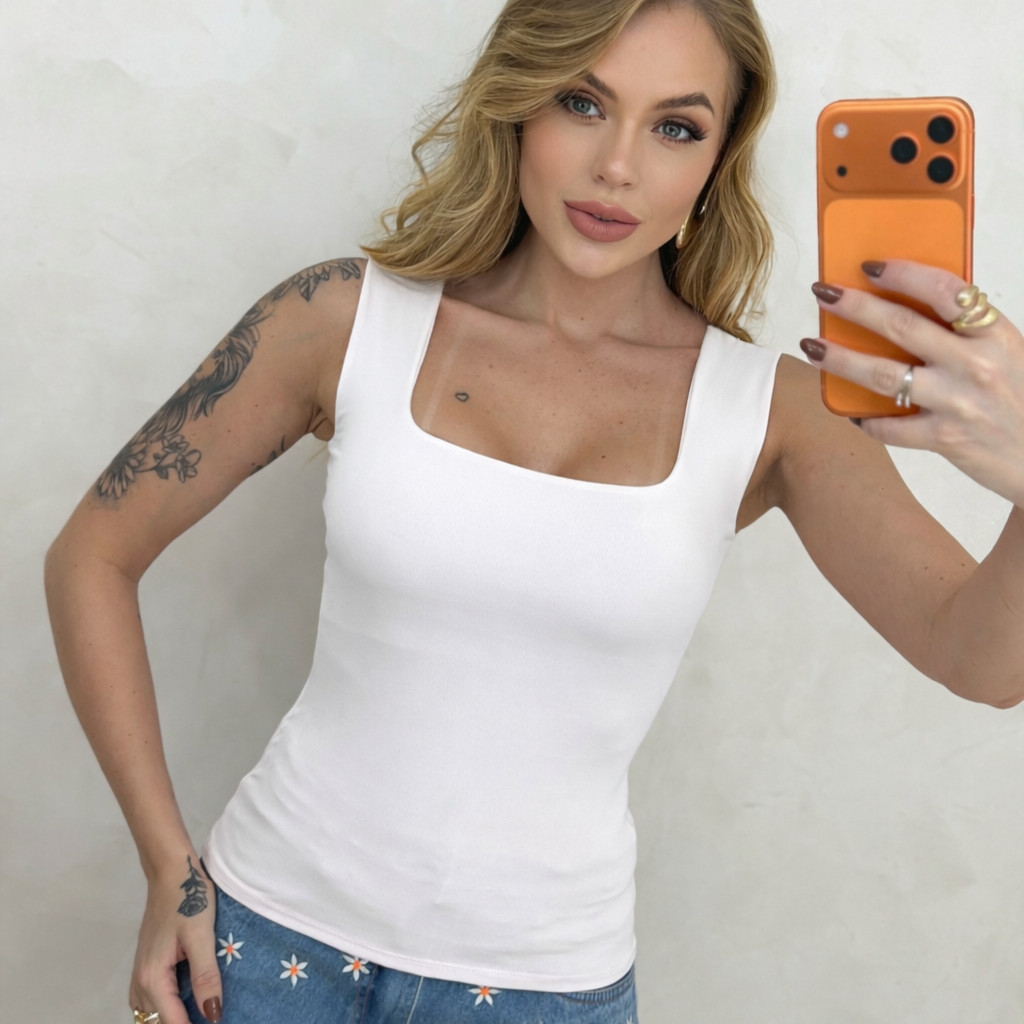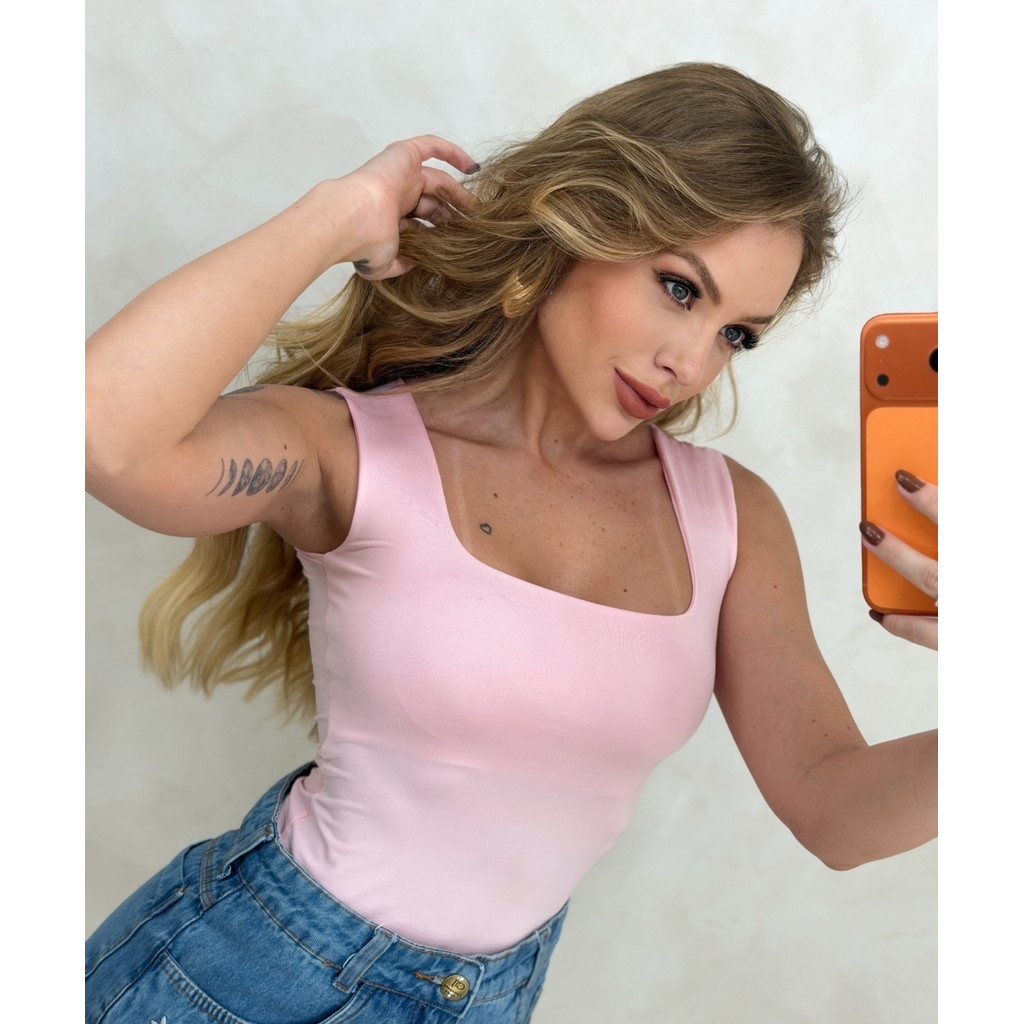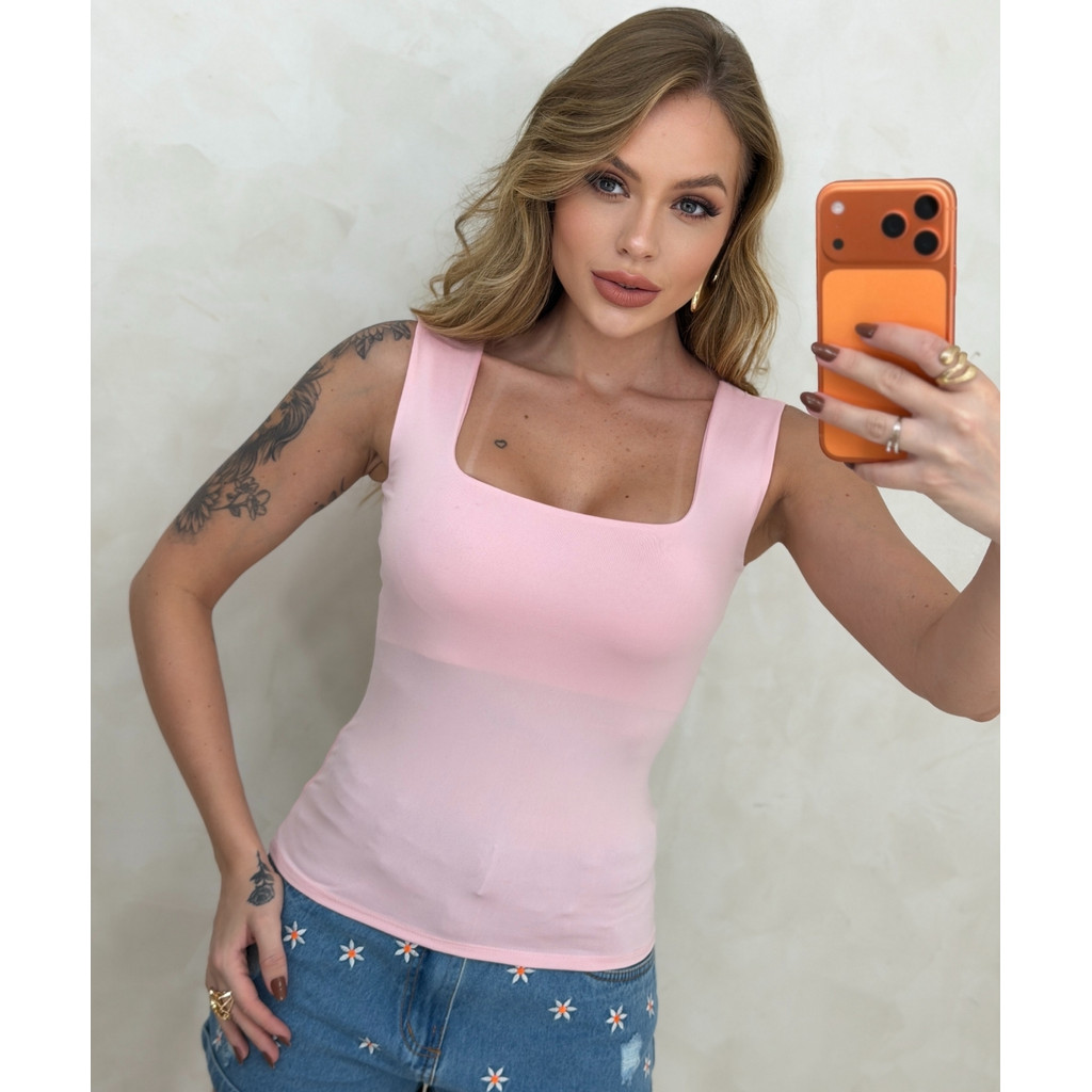 Regata Suplex Baby Look com Decote Quadrado Feminina