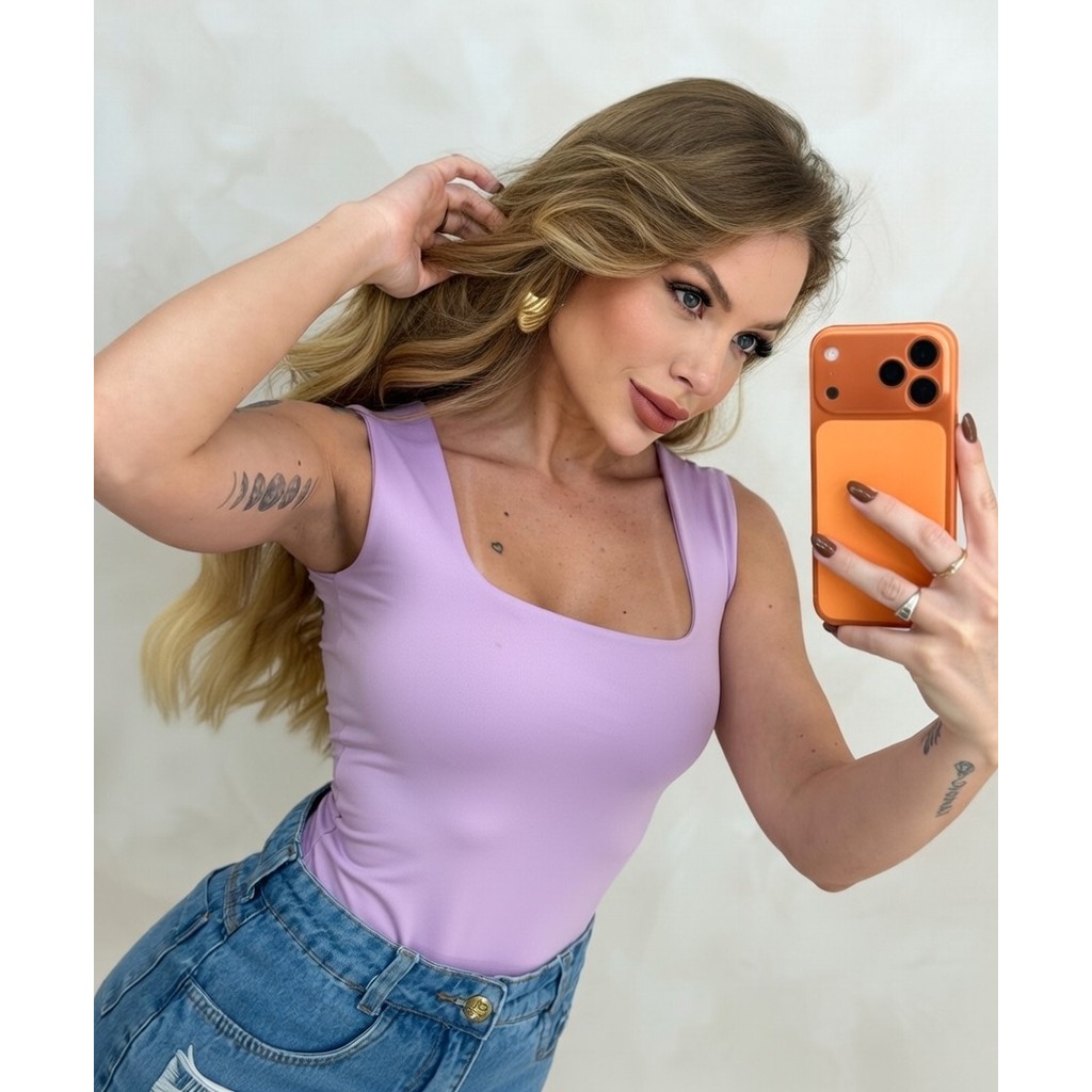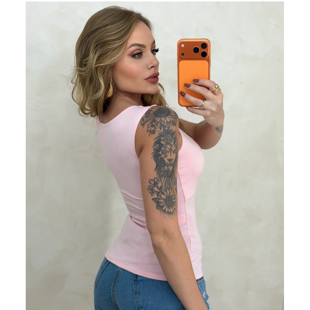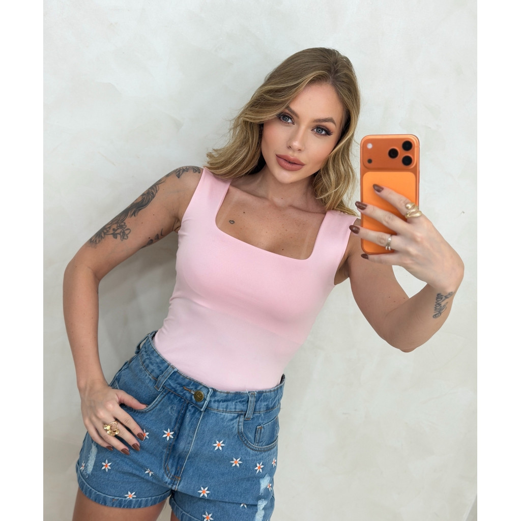 Regata Suplex Baby Look com Decote Quadrado Feminina