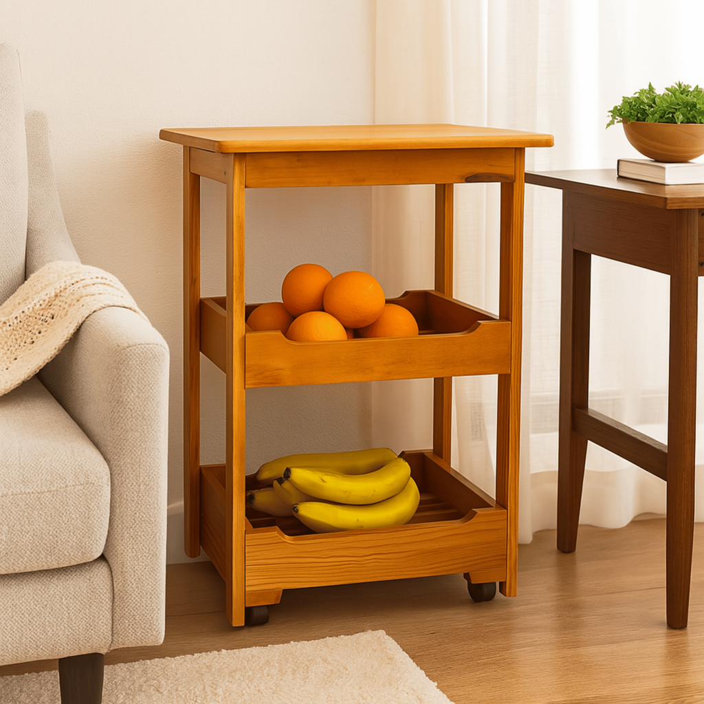 Fruteira de Madeira Multiuso Organizador Vertical 3 Andares Cesto para Cozinha Frutas Legumes