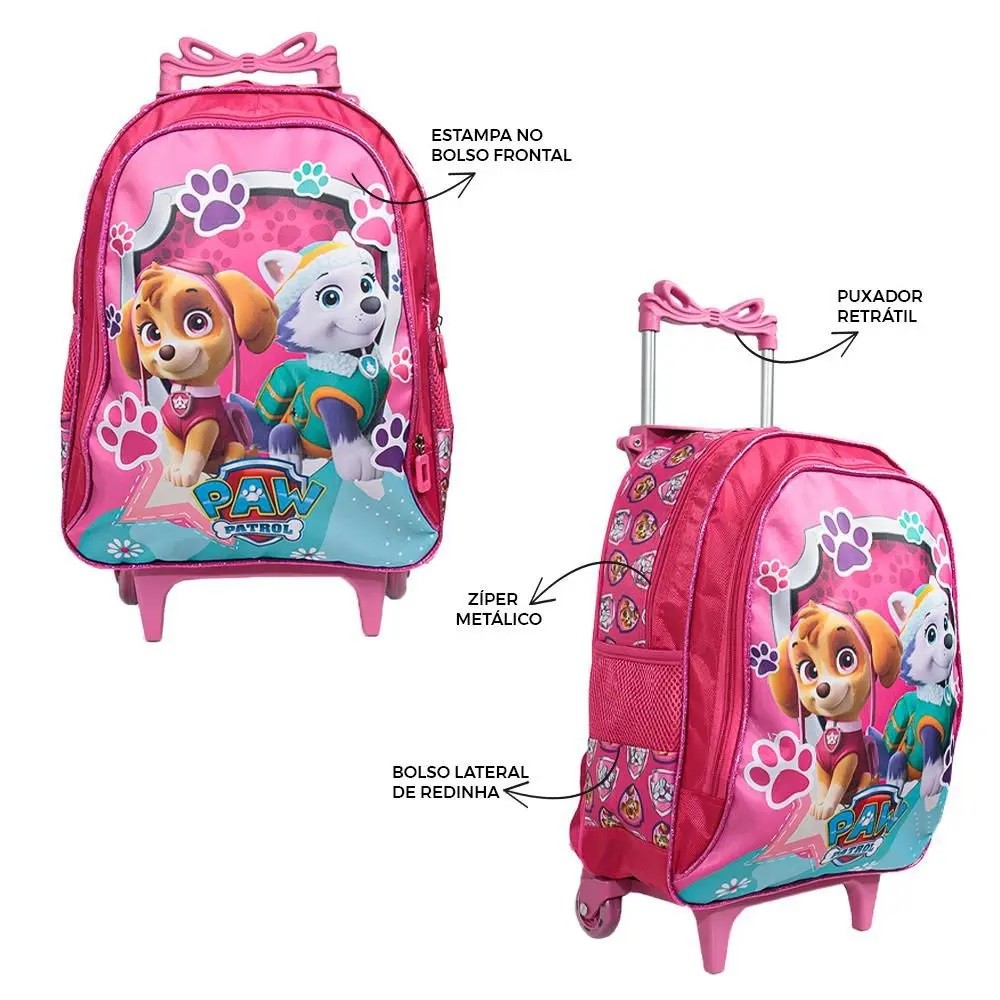Kit Mochila Patrulha Canina Skye com Rodinhas Lancheira Térmica e Estojo