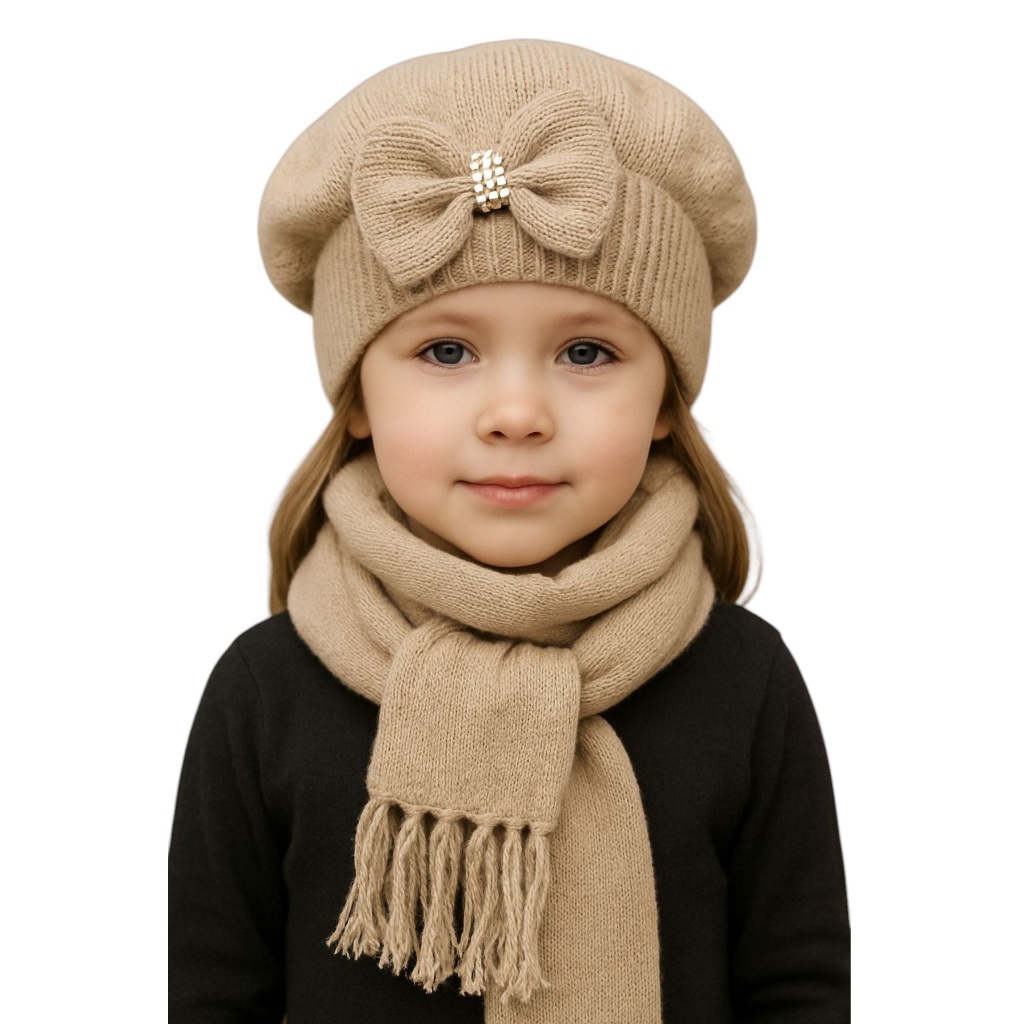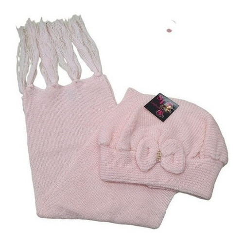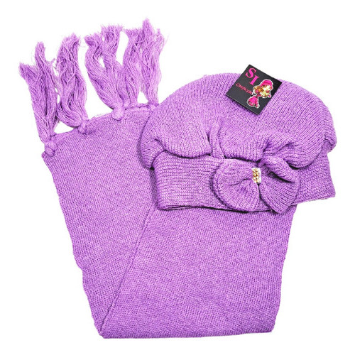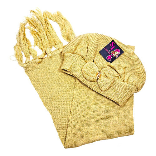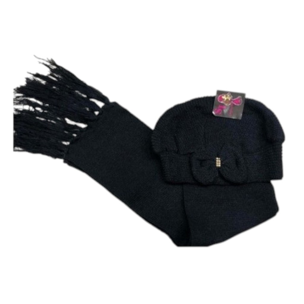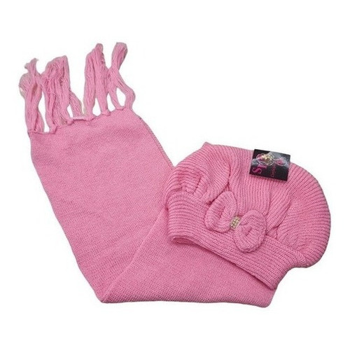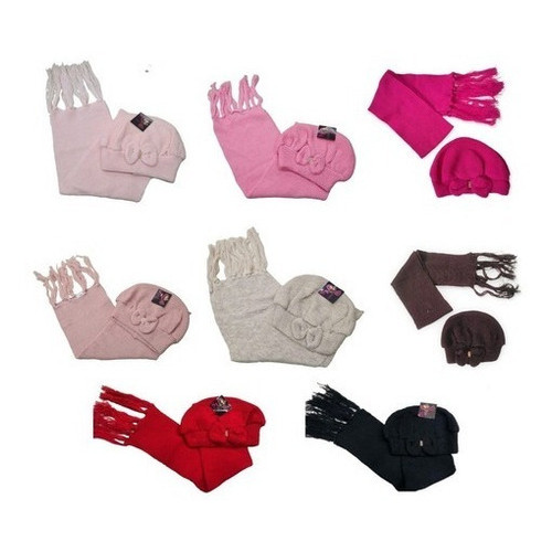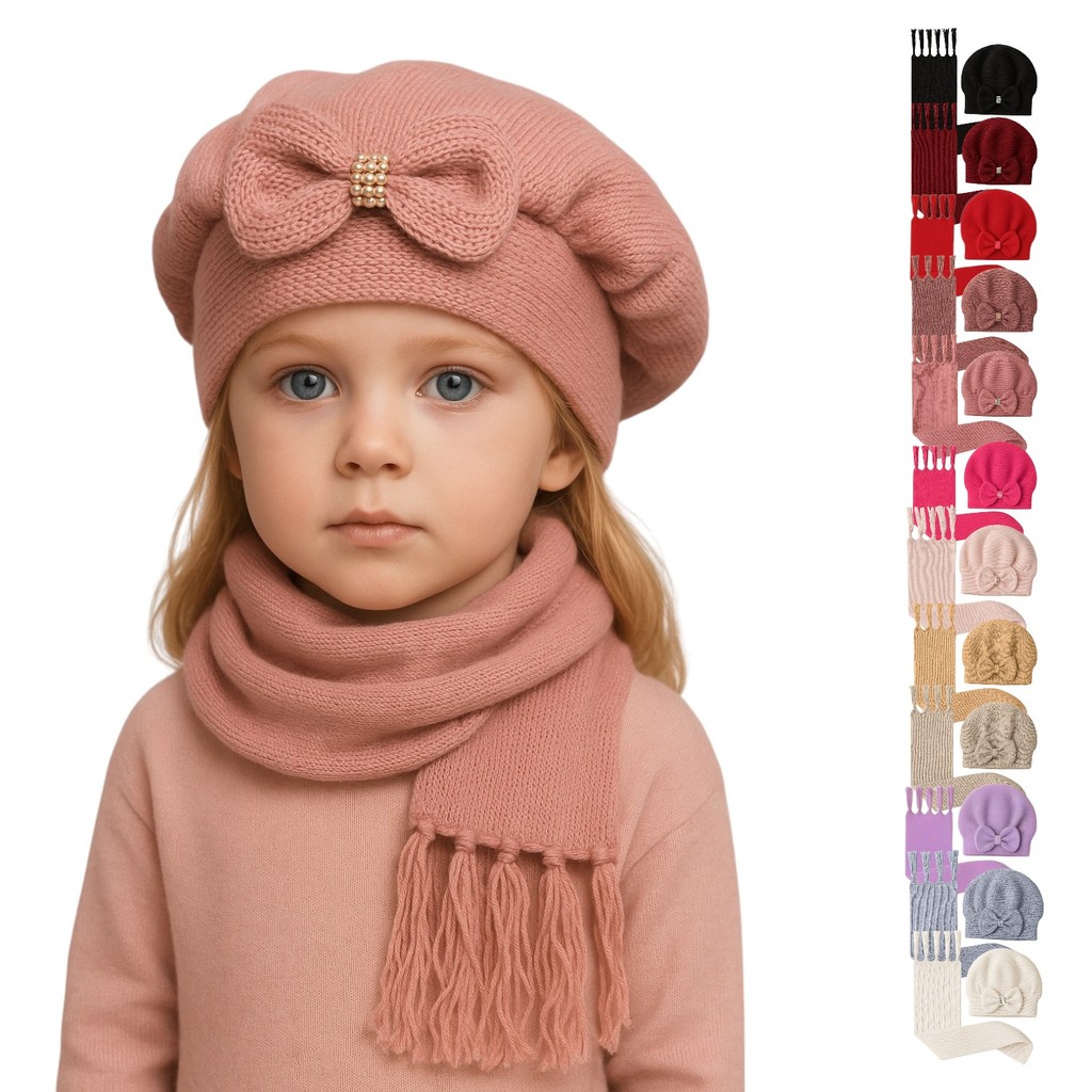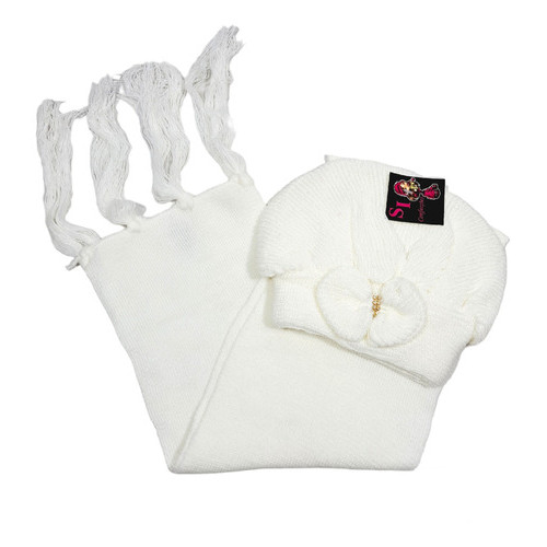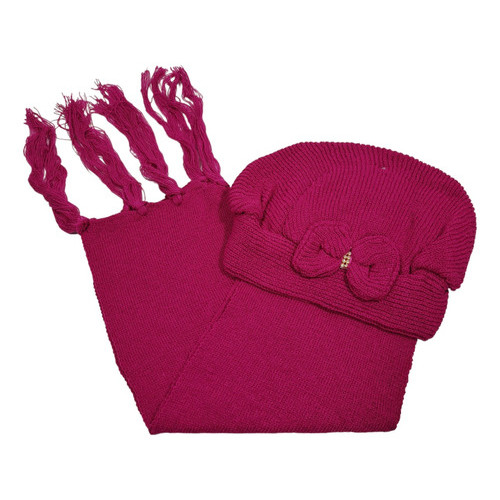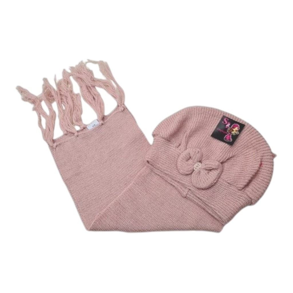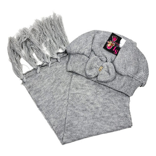Kit Boina e Cachecol Infantil de Lã com Laço Várias Cores