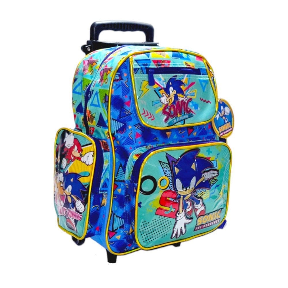 Kit Mochila Sonic Com Rodinhas Lancheira E Estojo Escolar