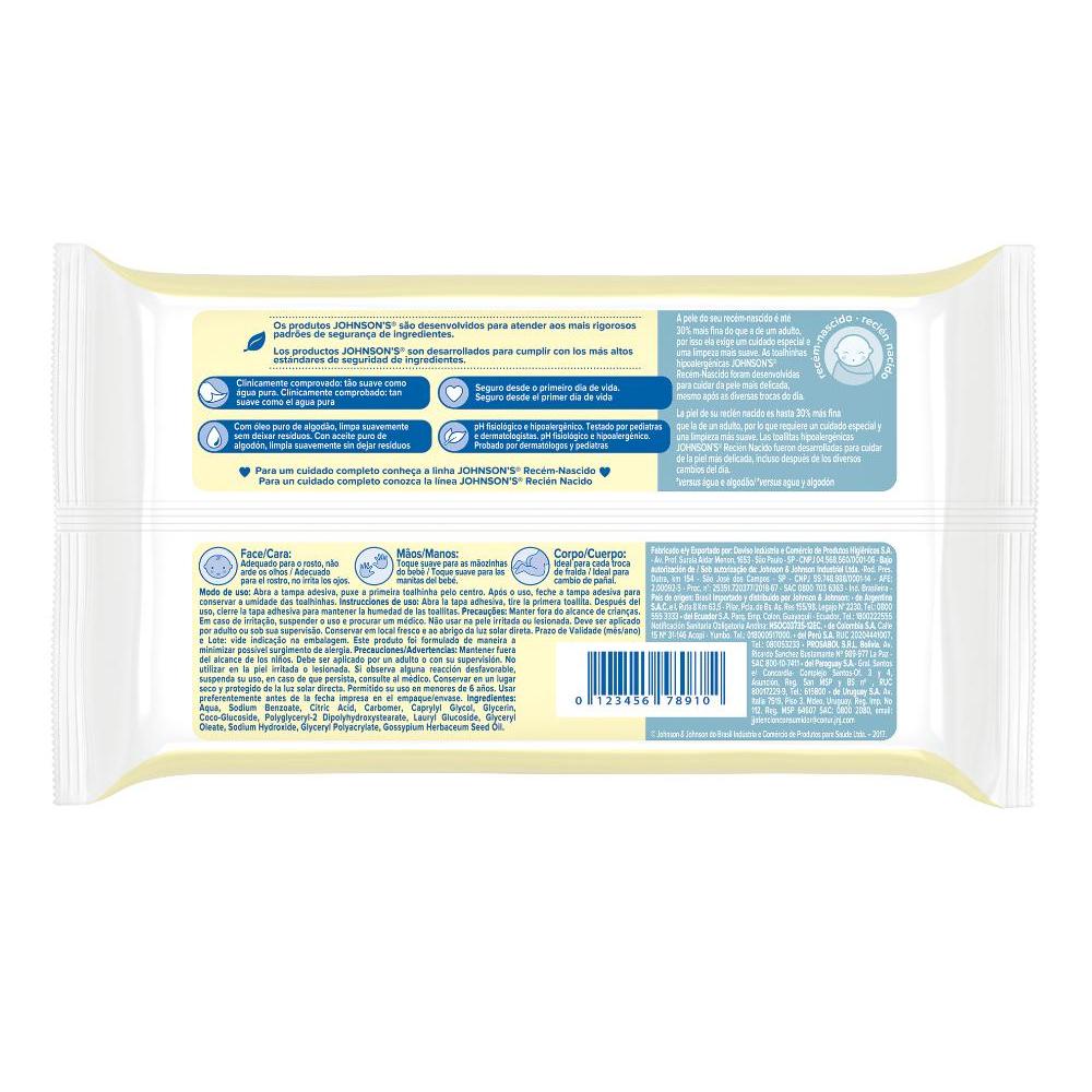 Lenços Umedecidos Johnson's Baby Recém-Nascido Sem Fragrância com 96 unidades