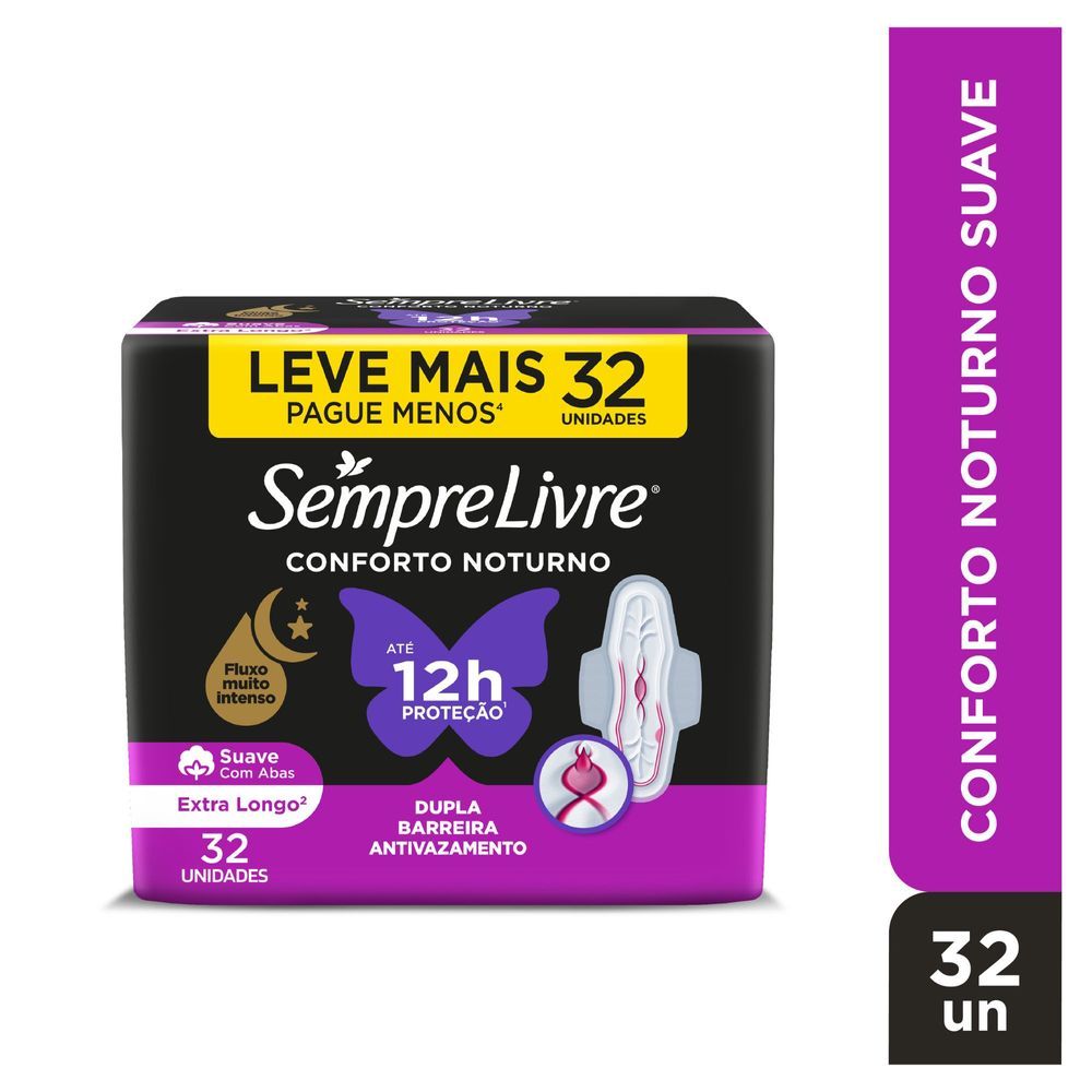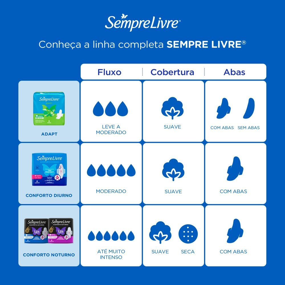 Absorvente Externo Sempre Livre Adapt Plus Noite e Dia Cobertura Seca com Abas 32 unidades