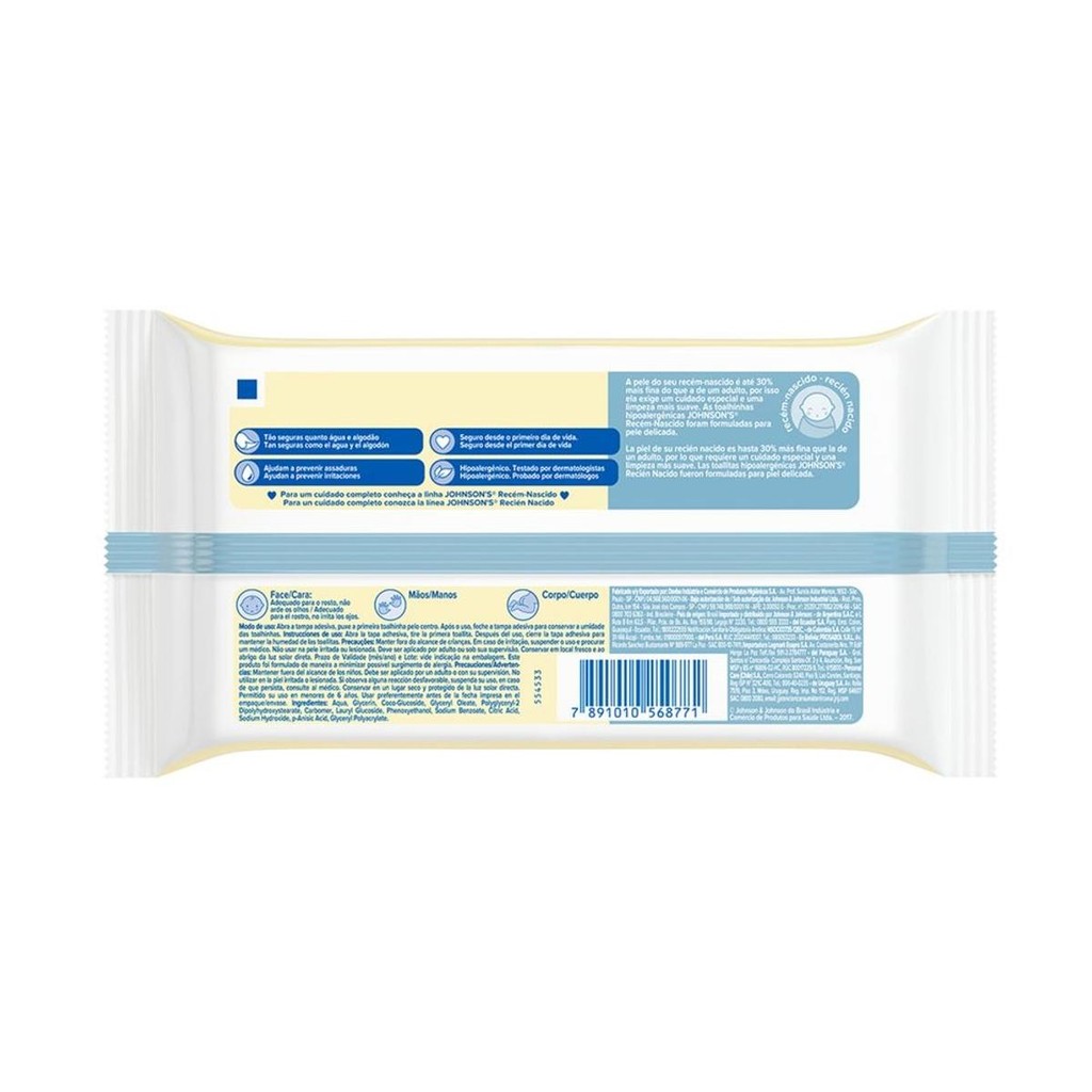 Lenços Umedecidos Johnson's Baby Recém-Nascido Sem Fragrância com 48 unidades