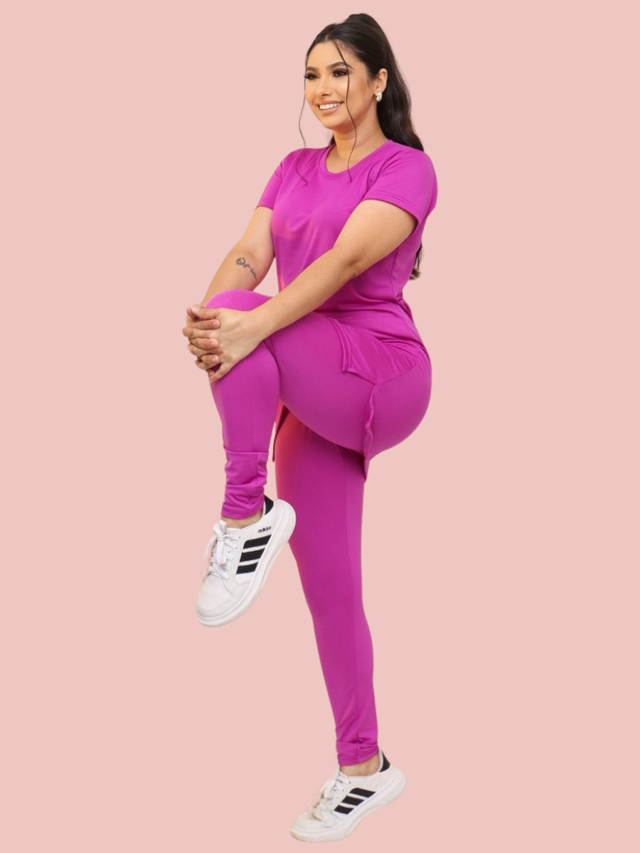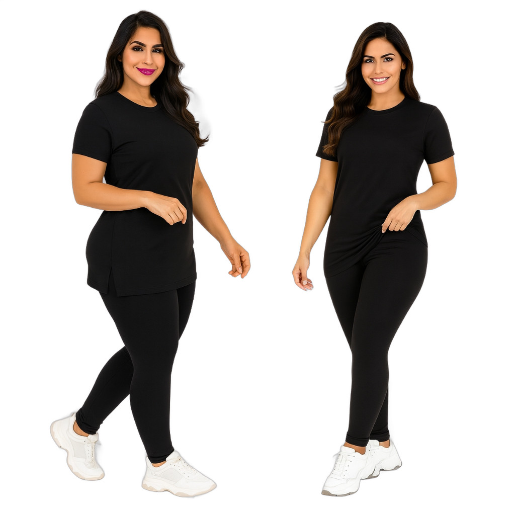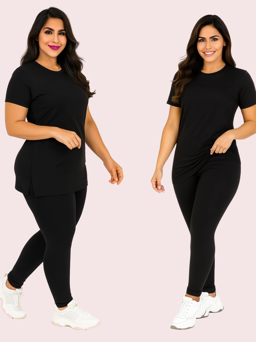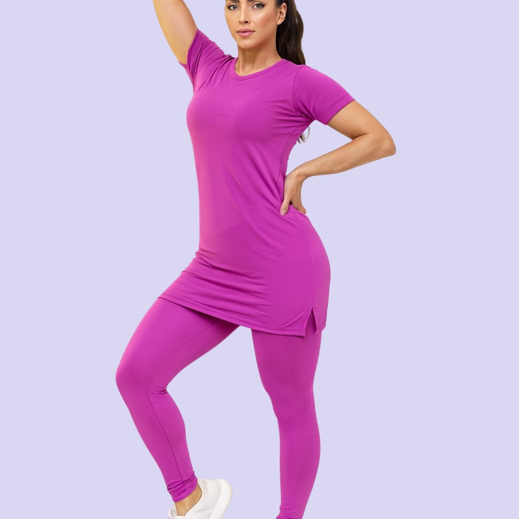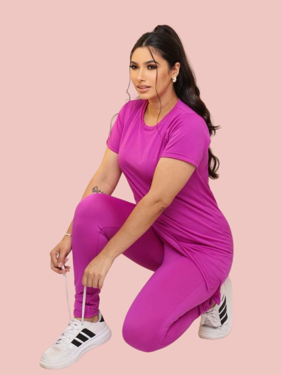 Kit Calça Legguing + Blusa Long Line Roupa De Academia Moda Evangélica