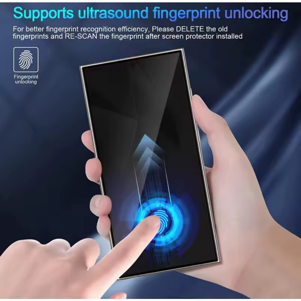 Versão de desbloqueio por impressão digital pelicula vidro de privacidade para s24/s24 plus/s25/s25 plus/s25 ultra