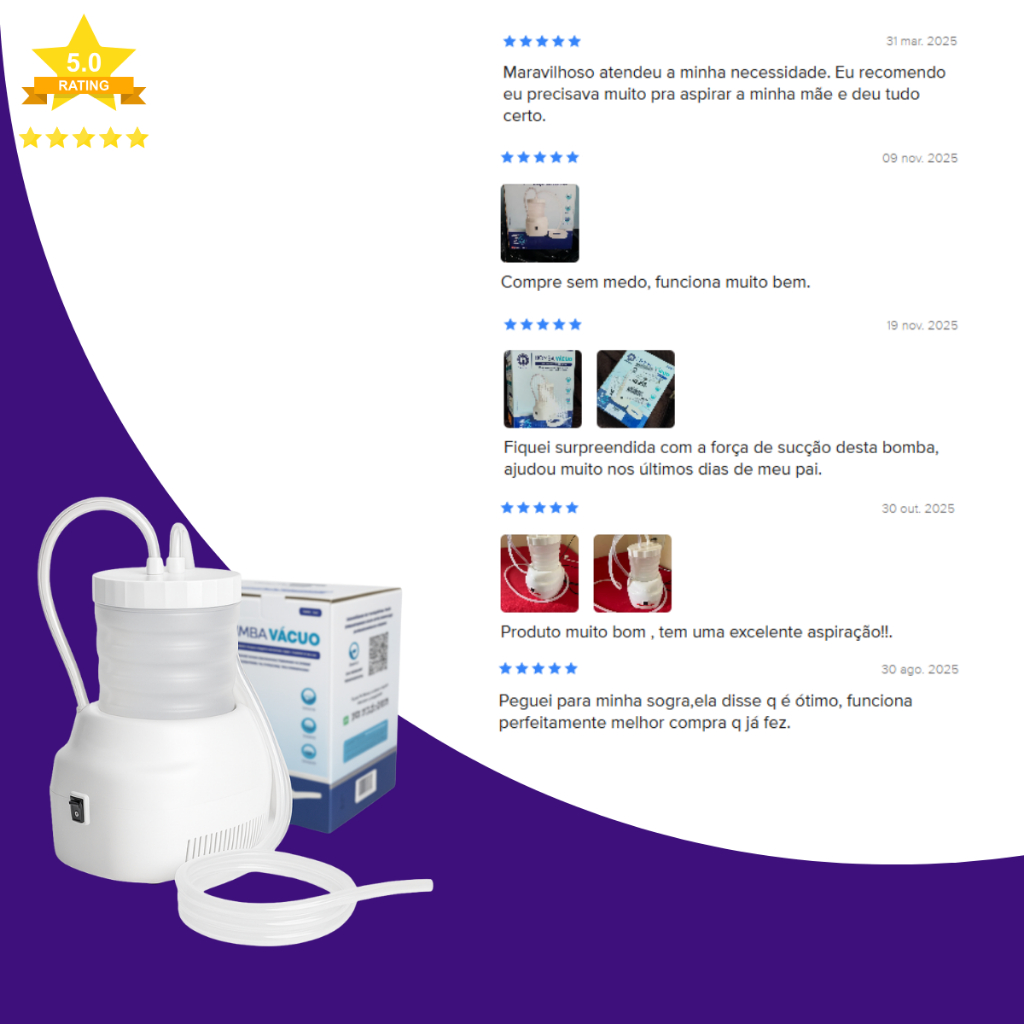 Aspirador Secreção e Sangue Nevoni 1,5L Portátil | Bomba a Vácuo Hospitalar Profissional home care veterinária