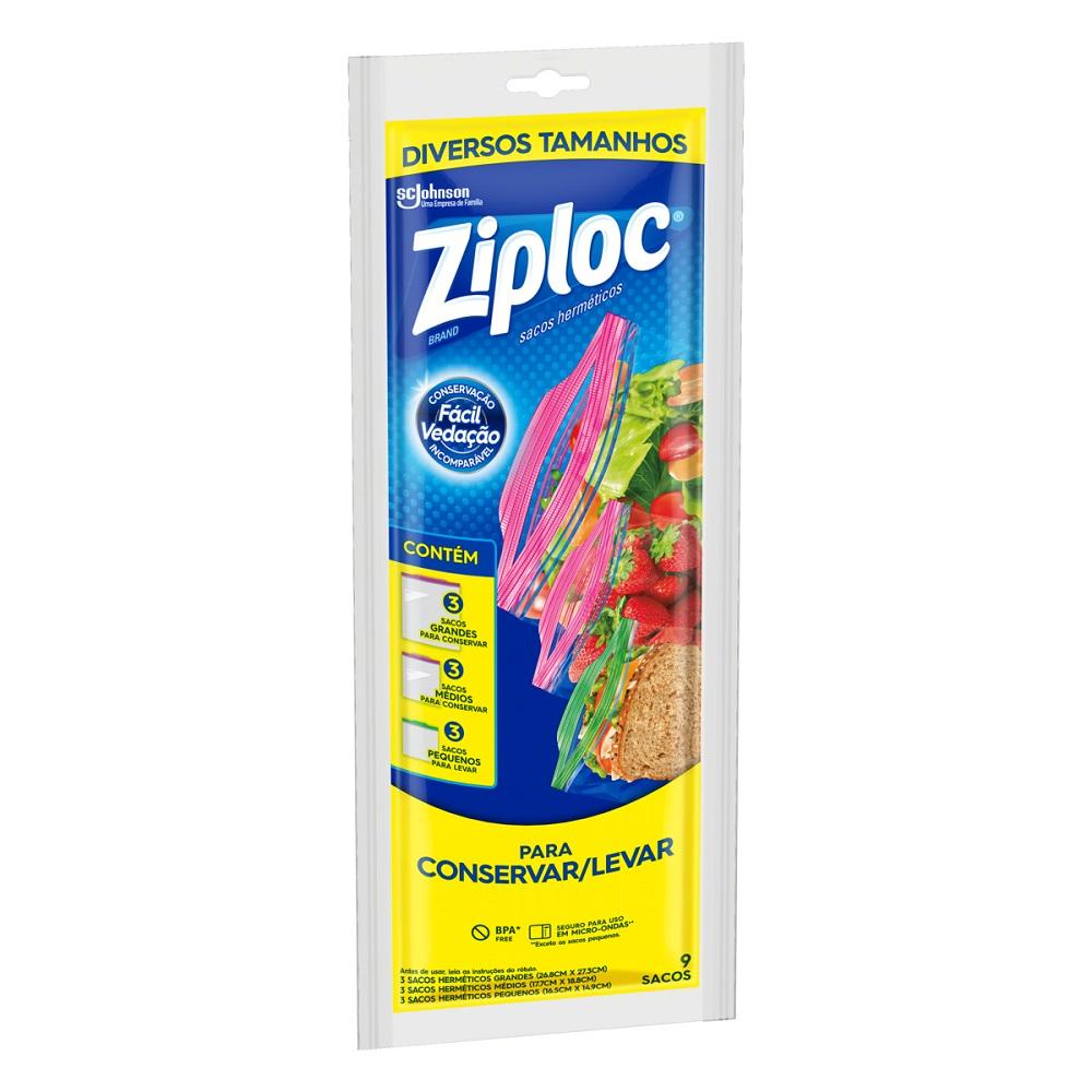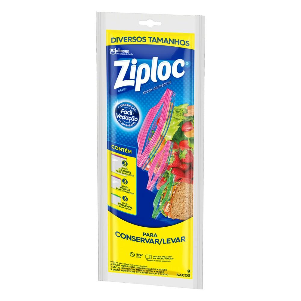 Saco Sache Ziploc Hermético Médio com 9 unidades
