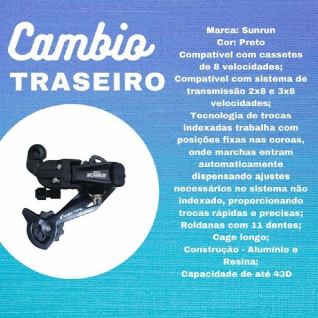 Câmbio Traseiro 8v 18v 24v Indexado 43d Cage Longo Bike Mtb