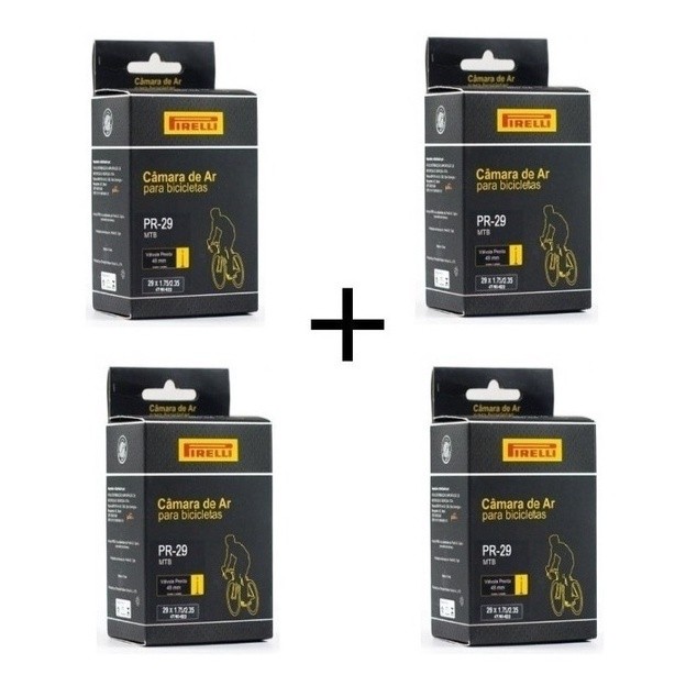 KIT 4 CÂMARAS DE AR PIRELLI ARO 29 BICO FINO PRESTA 48MM VÁLVULA LONGA MTB ATACADO
