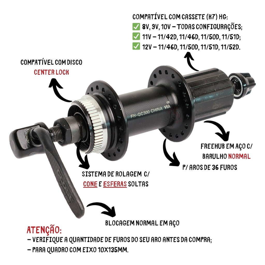 PAR CUBO K7 SHIMANO QC300 36 FUROS + PAR DISCO RT10 160MM - PADRÃO HG / MTB / NOVO TX505