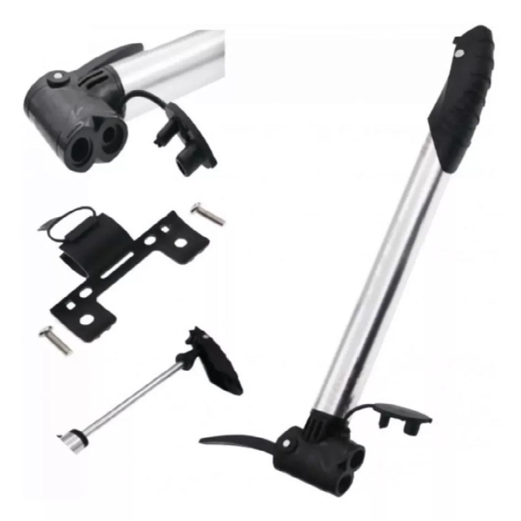 Bomba De Ar Bike Gts Bico Duplo Fino E Grosso Alumínio Cor Prata
