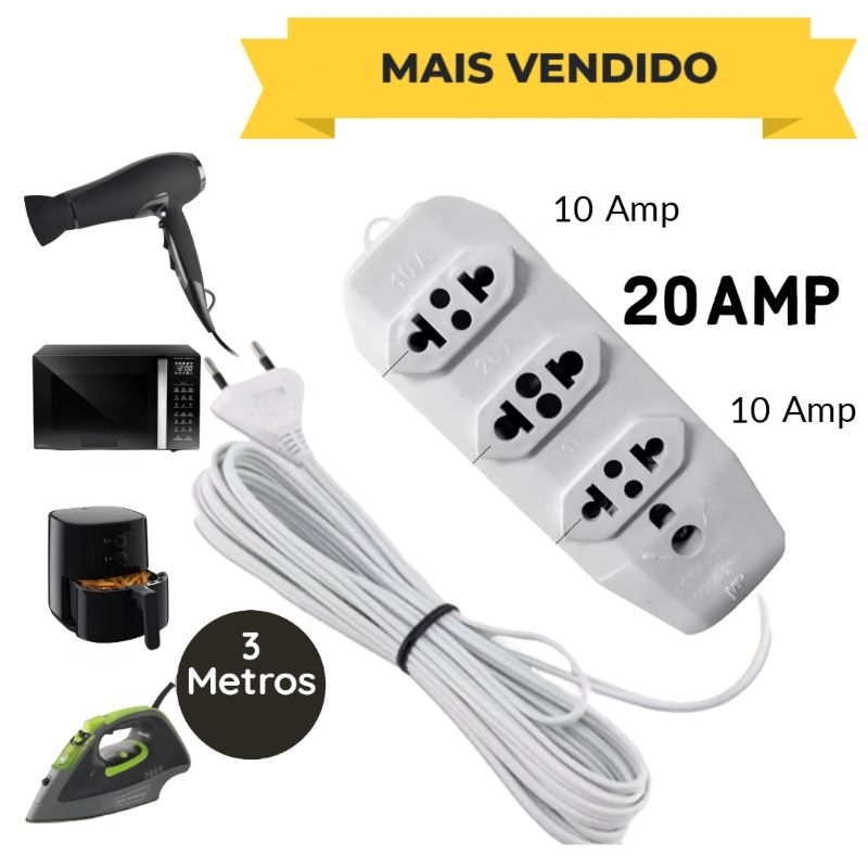 Extensão Elétrica para Air Flyers e Secador Cabelo 20 Amperes e 10 Amperes