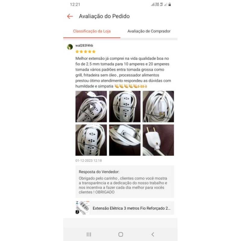 Extensão Elétrica 6 Metros REFORÇADA cabo 2,5 mm
