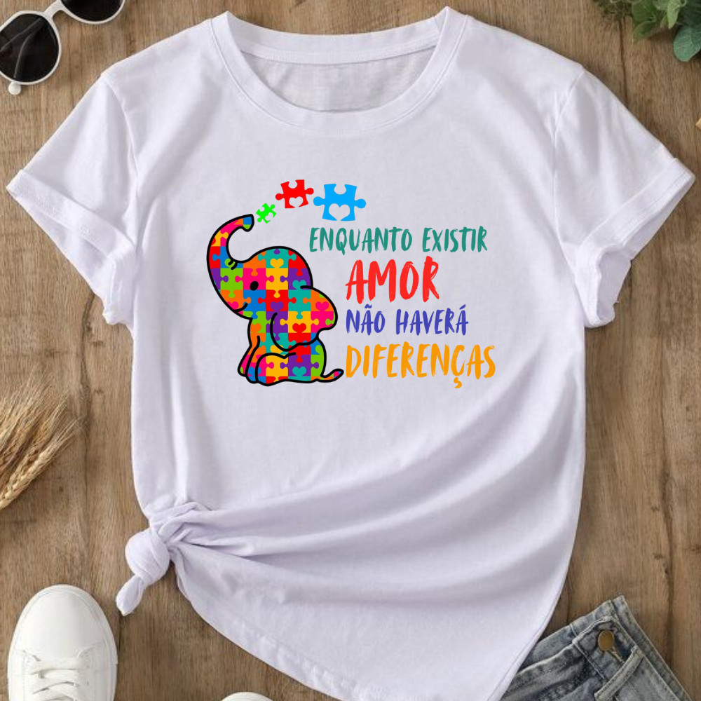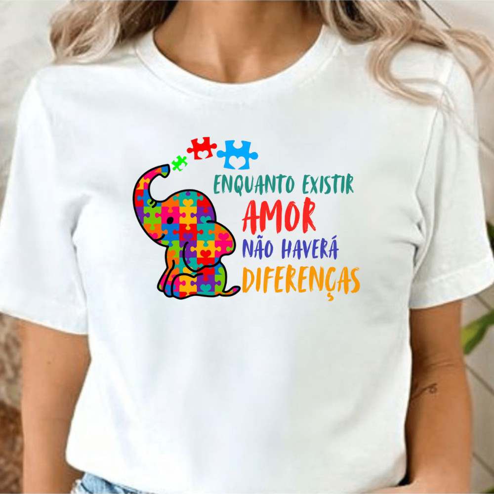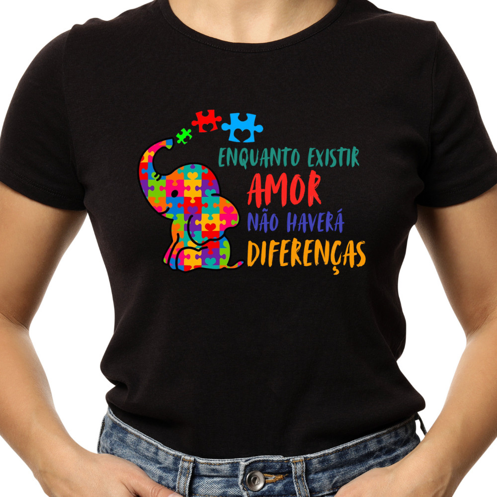 Camiseta Blusa T Shirt Feminina Estampada Autista Autismo Enquanto Existir Amor 100% Algodão