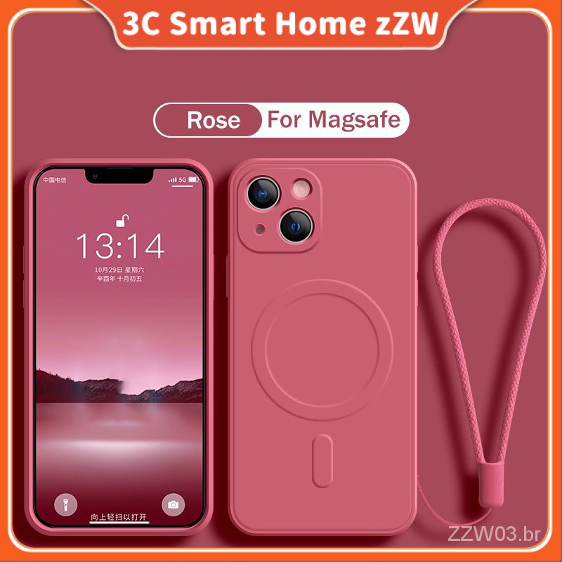 Silicone Original Para Capa De Carregamento Magnético Sem Fio Magsafe iPhone 14 15 Pro Max Plus Com Cordão